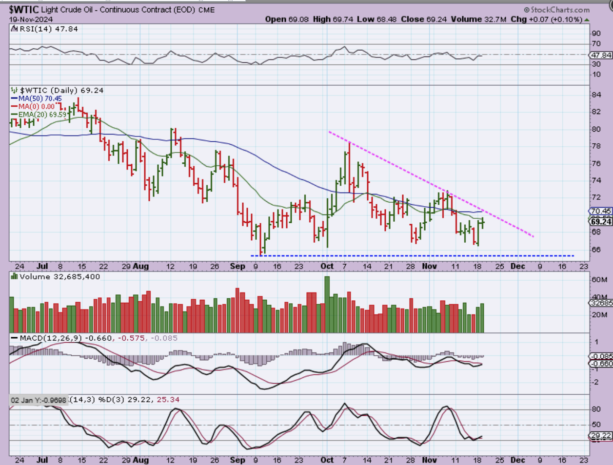 WTIC – Oil stalled at the 20 ema, so far, but this still might be day 1 after a dcl. Time will tell, but the Oil stocks remain more bullish that Oil.