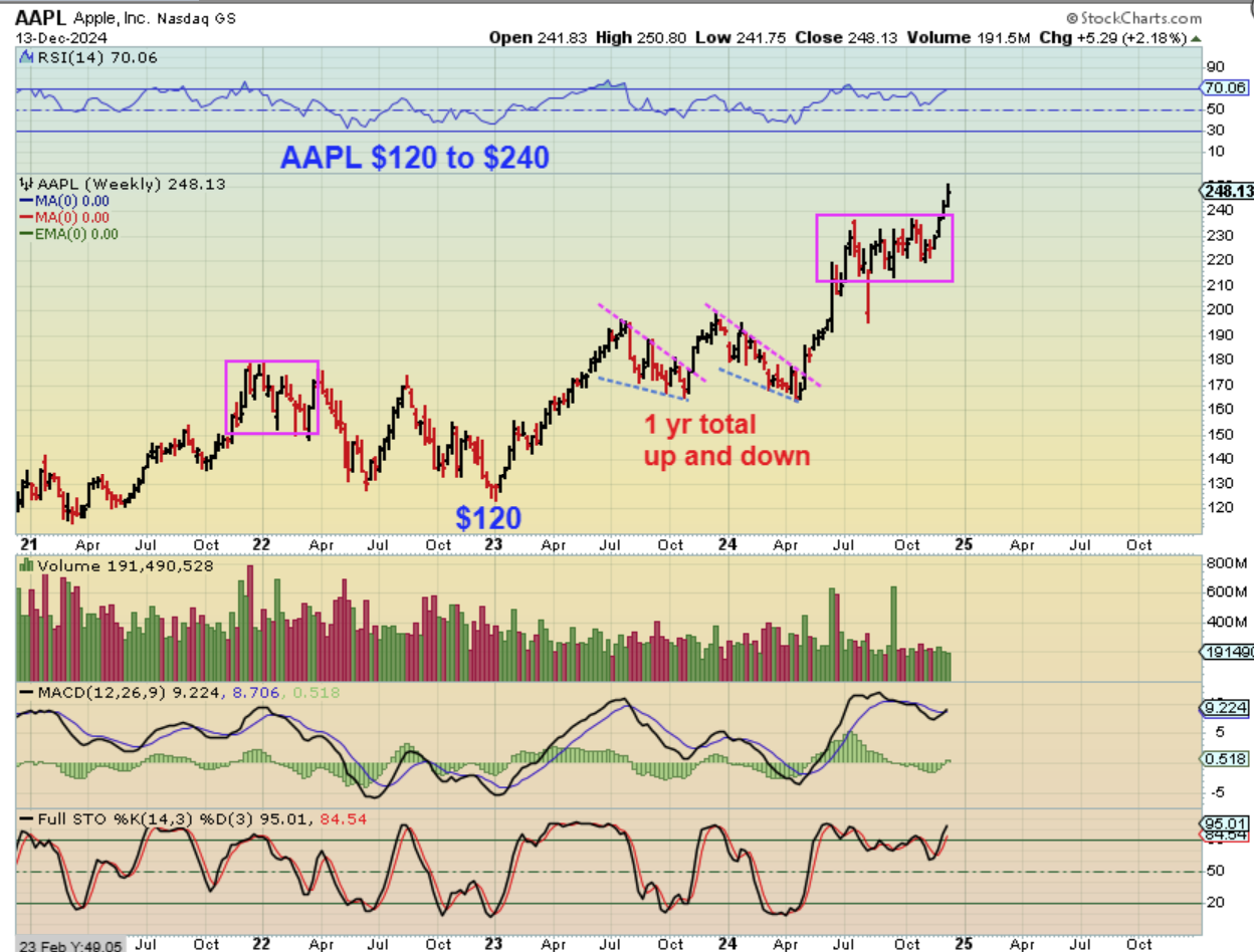 – AAPL ran from $120 to $180 and back to $120 in 2 year (no gains 2021-2022).