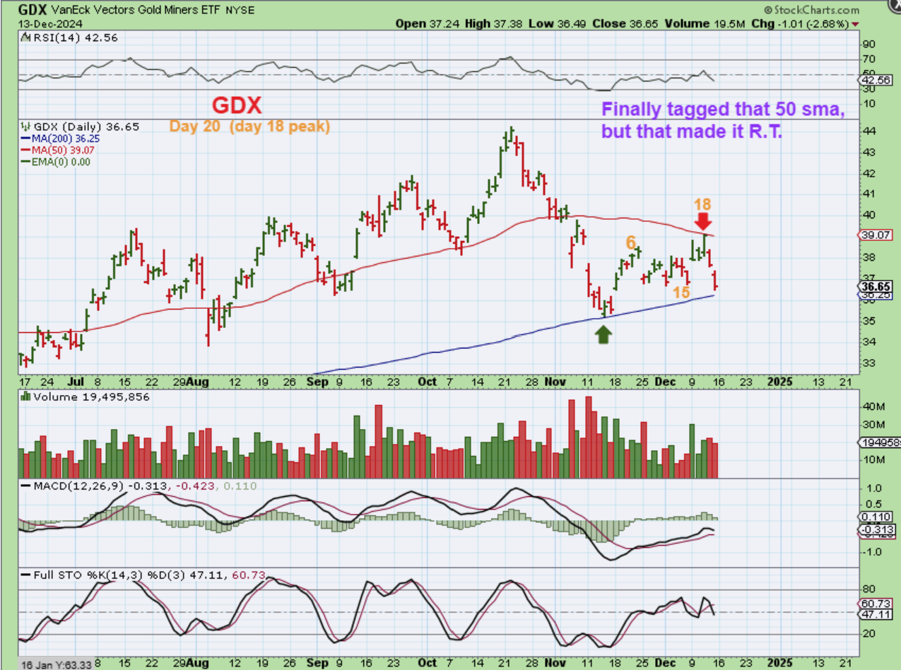 GDX tagged the 50sma on day 18 and rolled over into what should eventually become the next dcl. Well…