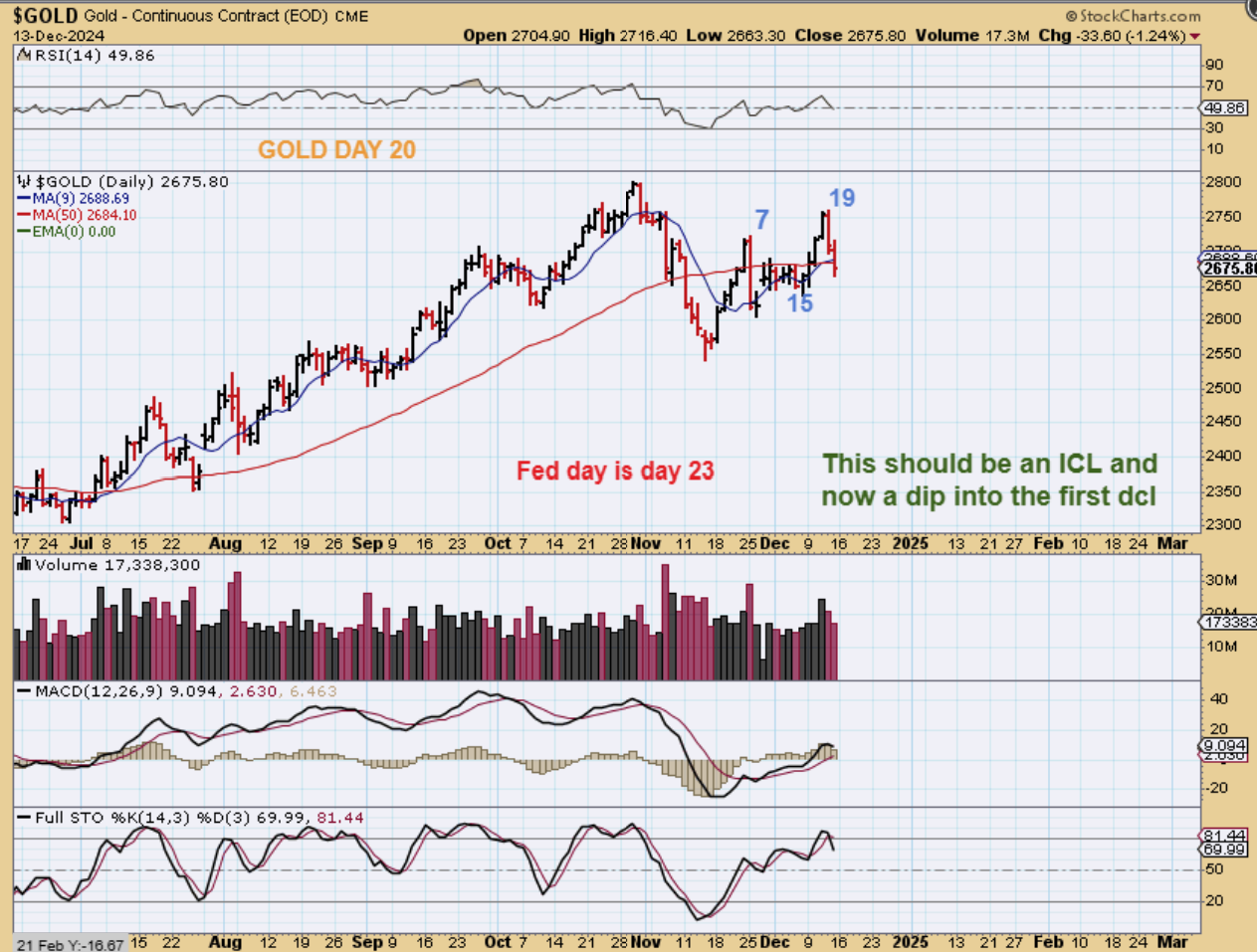3. THIS IS NOT NORMAL, but what part of this is the head fake? Was Gold so strong that it put in an ICL with that R.T. crash, even though it was short and R.T.? (I do think that may be the case). Or will gold crash to a new low now as an ICL that needs to drop to day 38 to be L.T.? I actually think that we may dcl near the fomc mtg and run to new highs during the 2nd daily cycle.