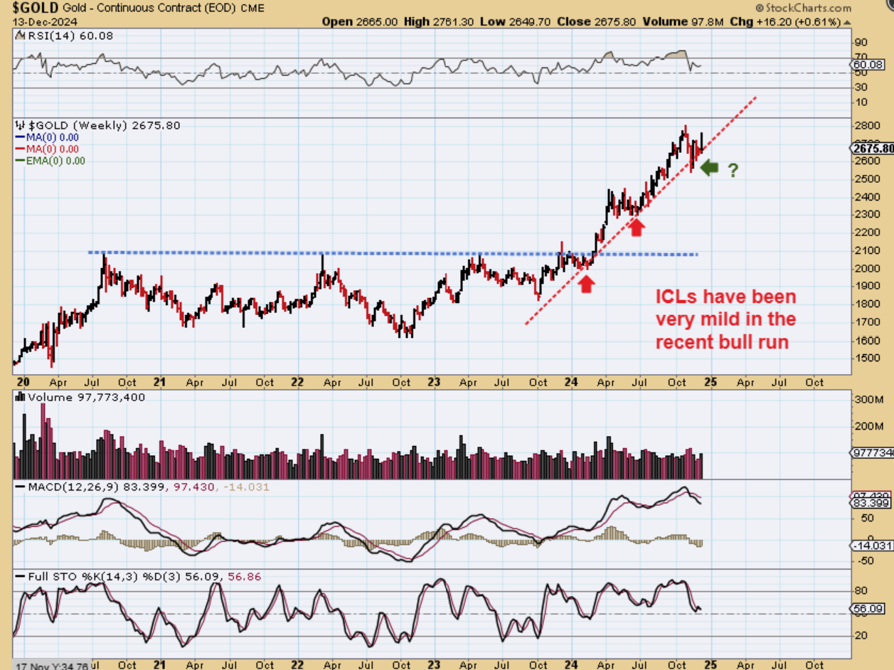 GOLD ICLs, as seen on a weekly chart, have simply been shallow and mild. The bull is strong, so we may now have an unorthodox ICL in place. I think we will know this week with the FOMC Rate Decision.