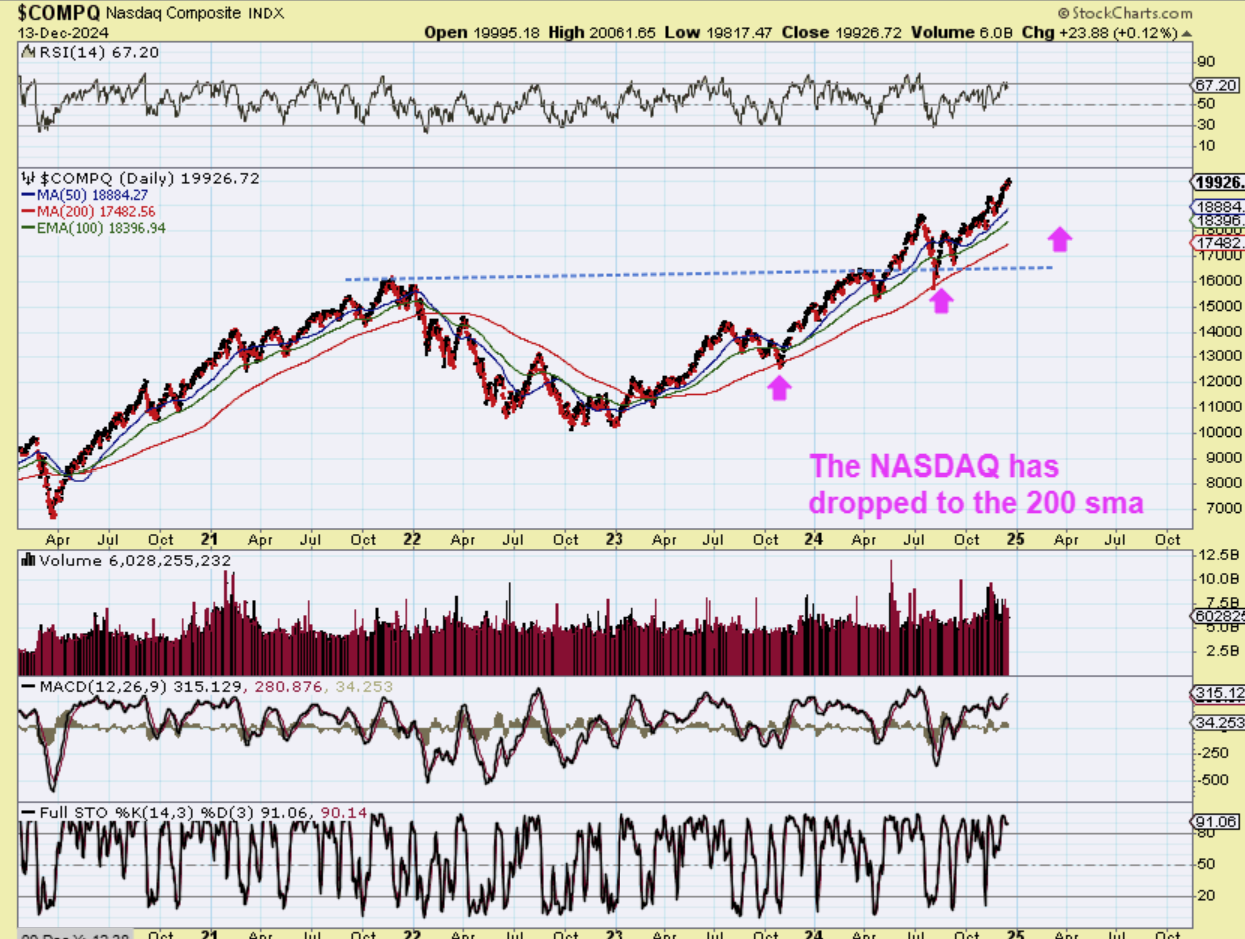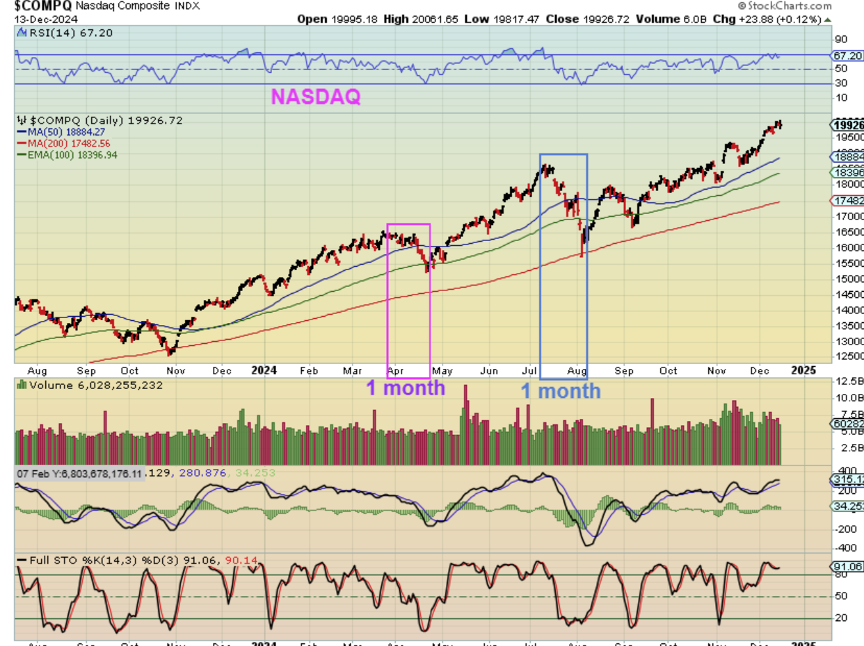 Zooming in for a close up, The NASDAQ just dropped in 1 month time-period. We saw SHARPER drops here, but it only lasted for 1 month each time, so we could get a sharp drop in early 2025 and then be right back on our way higher. WHEN WE GET THAT DROP, I want to look at a lot of the recent runners as possible buy and hold. Recently AAPL, IONQ, AAOI, NFLX, GOOG, DDOG, etc made good runs.