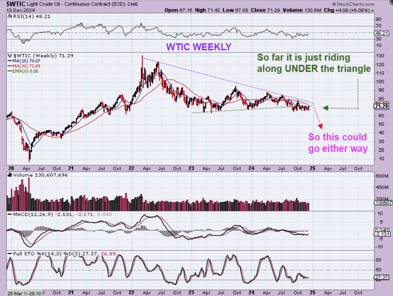 WTIC – Oil is very choppy and that even shows up on this weekly chart. Look at the price from September into December and you’ll see that it is just chopping sideways, so really this could break out higher or lower. The longer that it takes to choose a direction, the later in the Intermediate Cycle we get and it will weaken, not strengthen in the 3rd and 4th daily cycle. This needs to break out higher SOON, if it is going to.