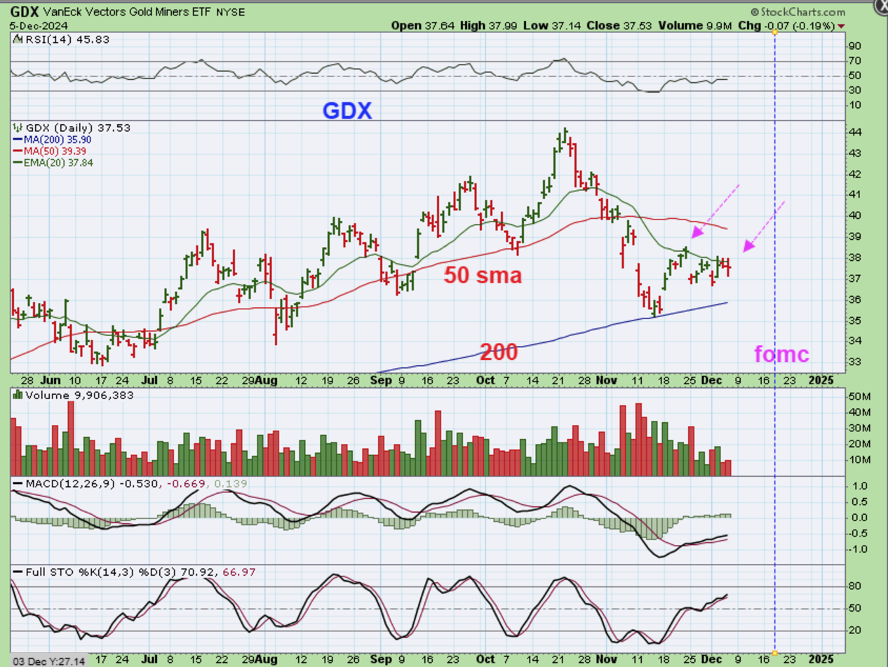 GDX has actually struggled at the 20ema and couldn’t even make it to the 50sma.