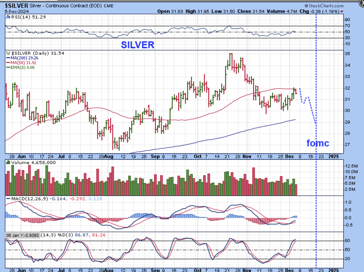 SILVER also tagged the 50sma and then dropped yesterday. I am guessing that the next low could come in sometime around the FOMC Meeting.