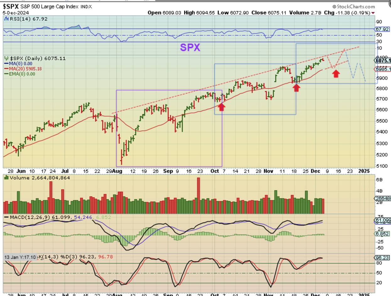 The SPX has been slowly chugging along higher, but it was slightly red on Thursday. It can continue chugging along higher along the upper blue trend line, or…