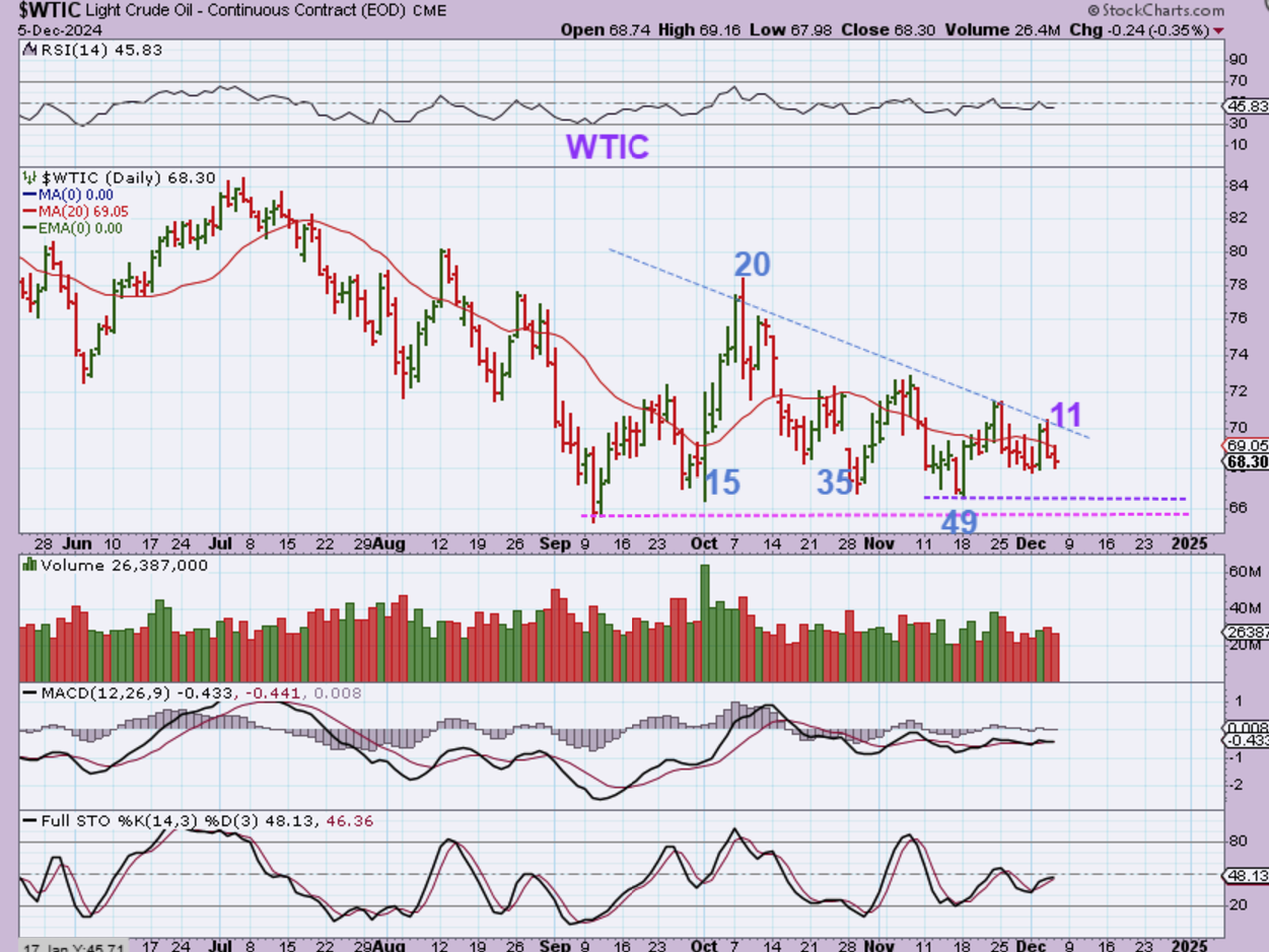 WTIC – Oil is very choppy, but I am thinking that it already has a dcl in place at day 49, and that would put us on day 12 yesterday. This has been too choppy to trade.
