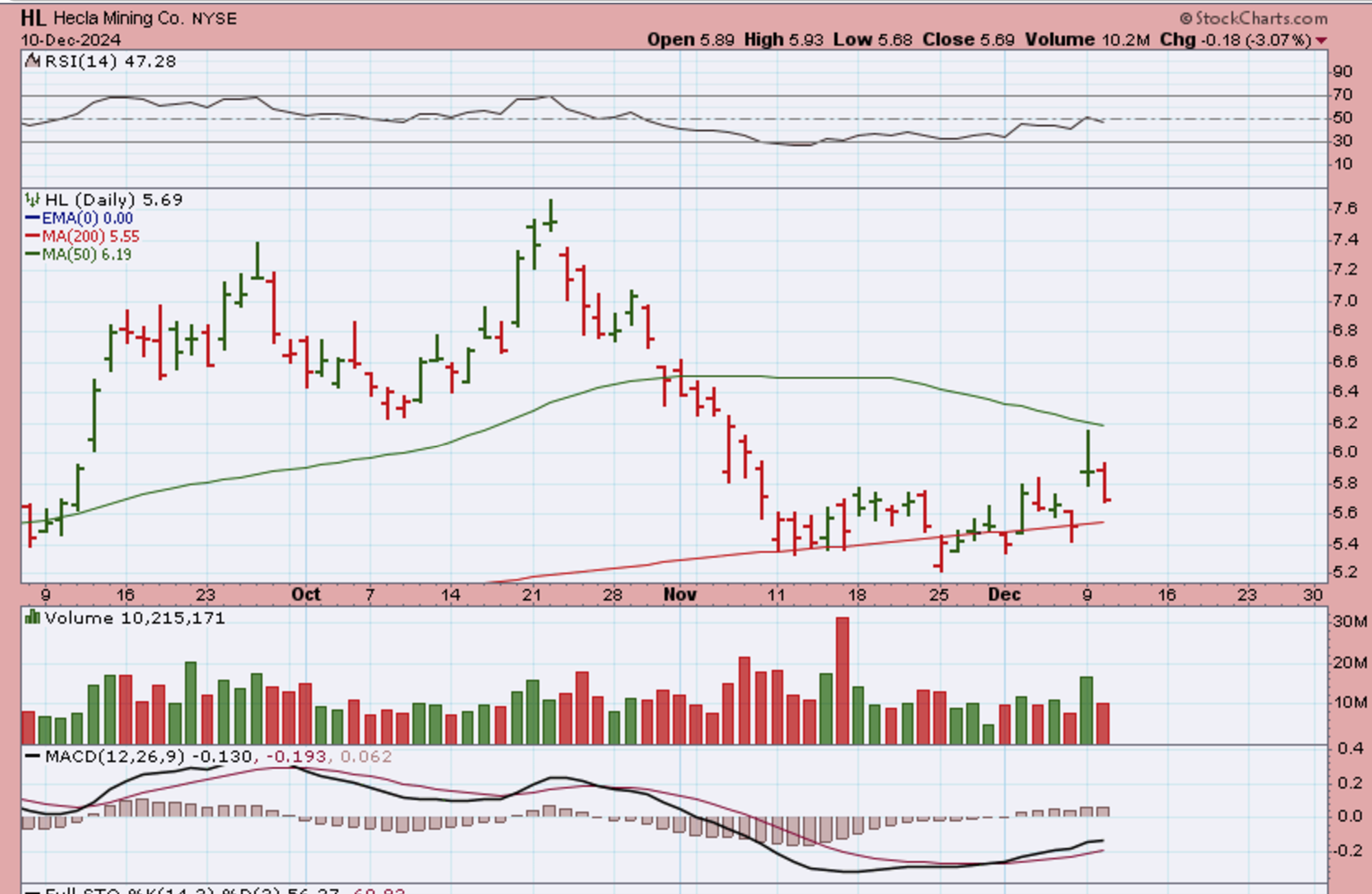 Right now EXK, AG, HL and others are not really following Silver, they are being rejected at the 50sma.