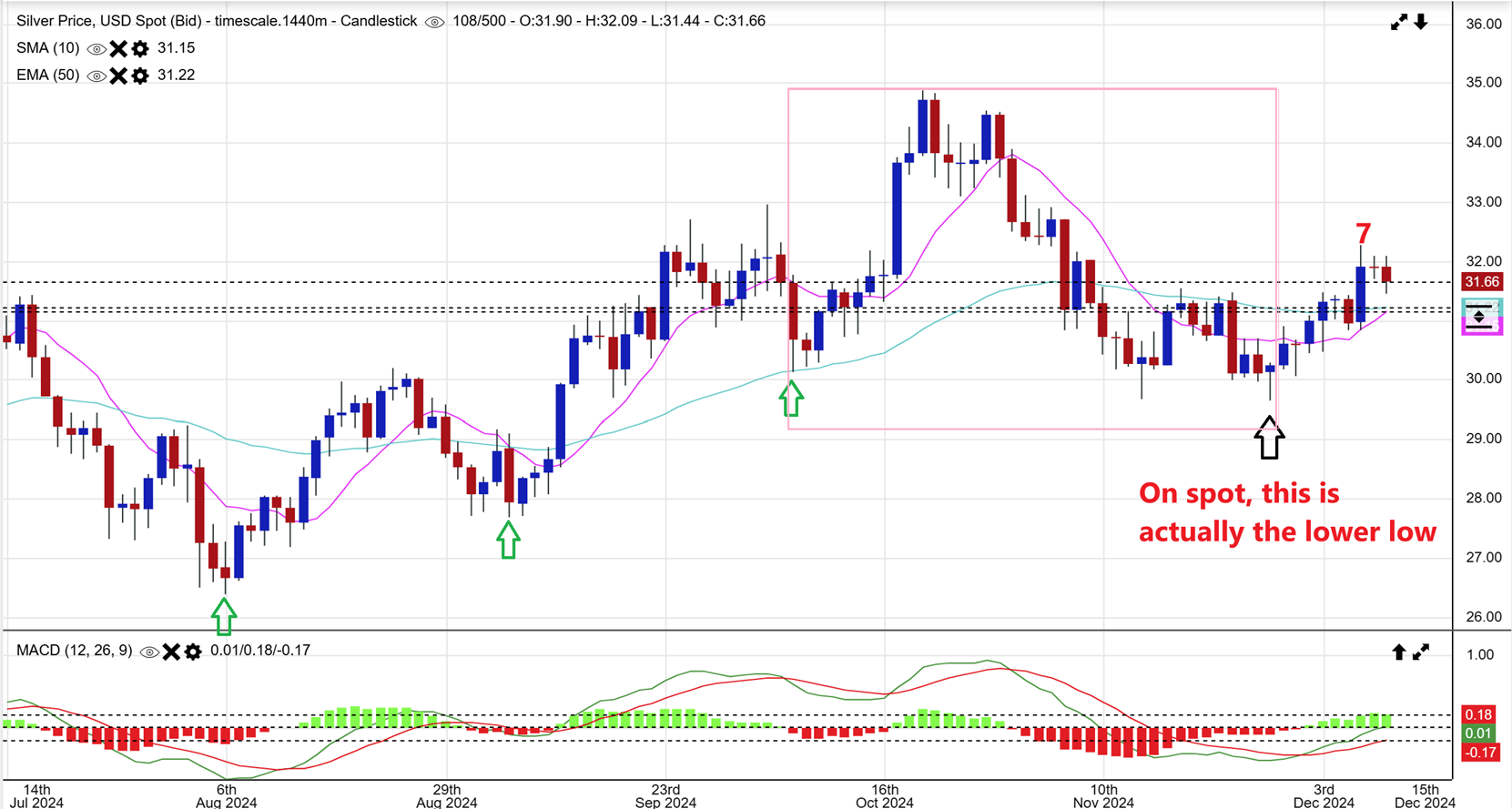 HL is not really following Silver, it was rejected at the 50sma.