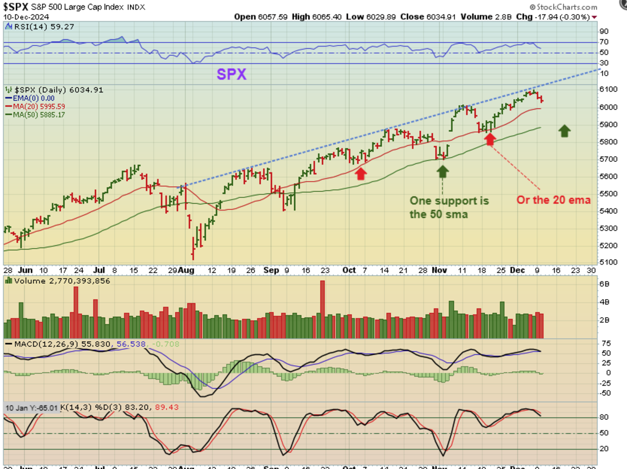 And right now we do see a 2 day pullback that was expected with The SPX. I have been drawing an overhead trendline and we did reach that area by day 15. Tuesday was day 16 and if it keeps dropping, I have pointed out 2 common supports to keep an eye on.