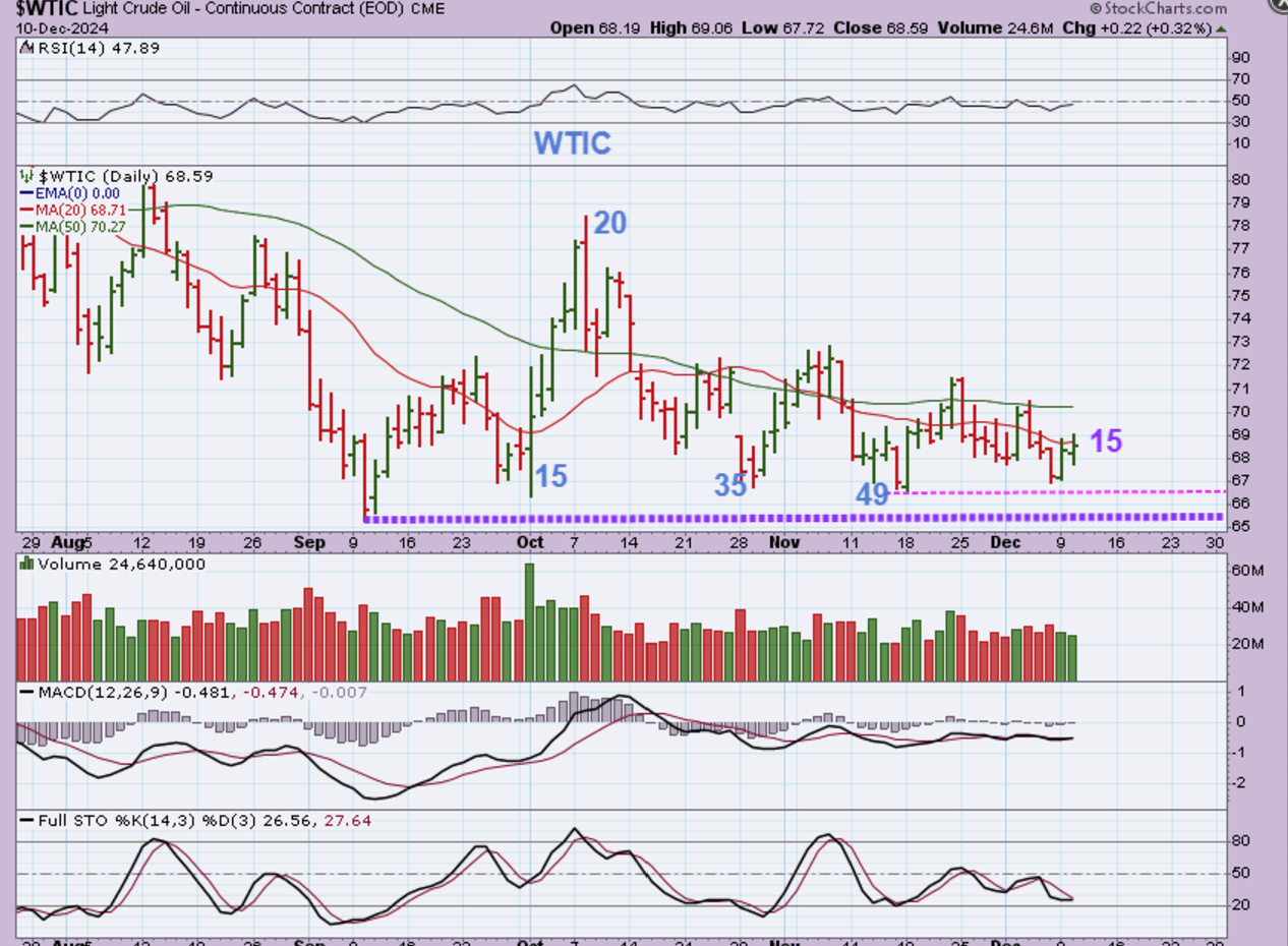 WTIC – Oil is very choppy and is now on day 15 of the 2nd daily cycle. It remains choppy and is still down near the ICL price.