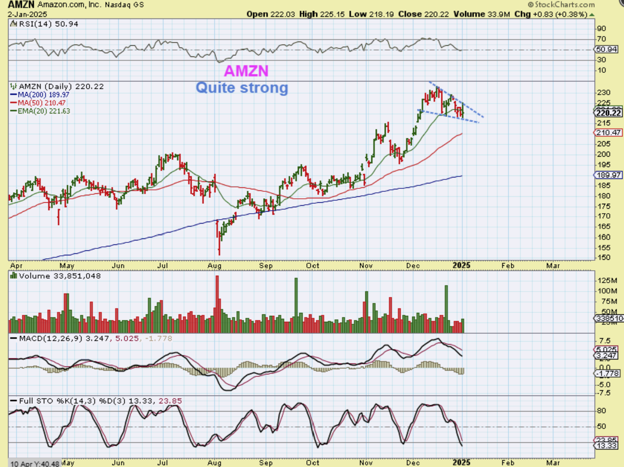 AMZN is actually just forming a bullish looking wedge as we drop into a dcl. That COULD break down if the markets sell off into an ICL though, it certainly did with that ICL drop in August, right? I even discussed buy & hold of GOOG, AMZN, NVDA, NFLX, etc at that time, but ICLs are scary and hard to buy and hold until they prove themselves. That is why I am discussing it often now—to prepare us for possibly a sharp dip and ICL buy opportunity shortly after.
