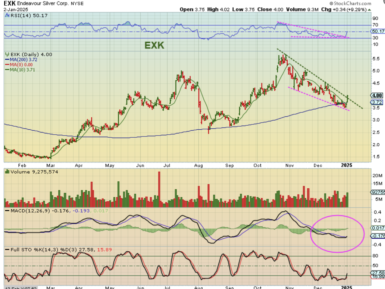 EXK pretty much tripled last March to July. It dropped in the ICL drop and then doubled August to October. THAT makes me want to buy and hold EXK, even though it can be rough and choppy. I see a Bull wedge right now. Next, I want to show you something…