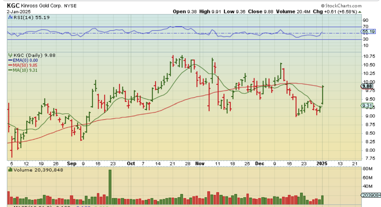 KGC – Gold stocks were not running higher with a Gold ICL, but they seem to believe it now.