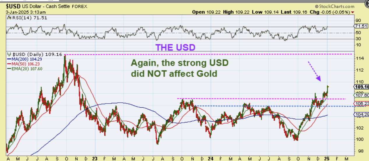THE USD is not rolling over after that 2nd daily cycle. It gained strength and now looks set to run to the former highs of 2022, but this has NOT been negatively affecting Gold. In fact, Gold was up too…