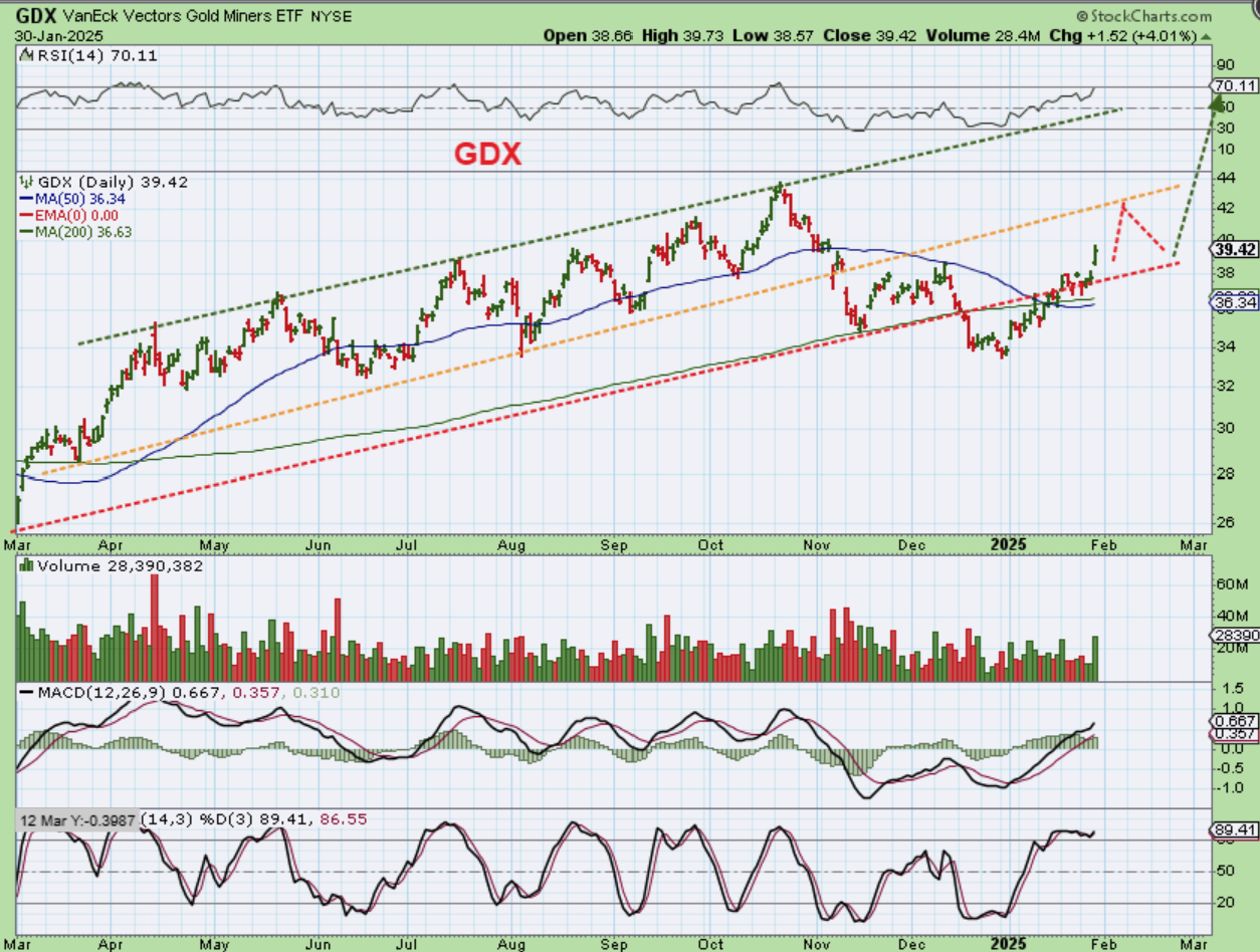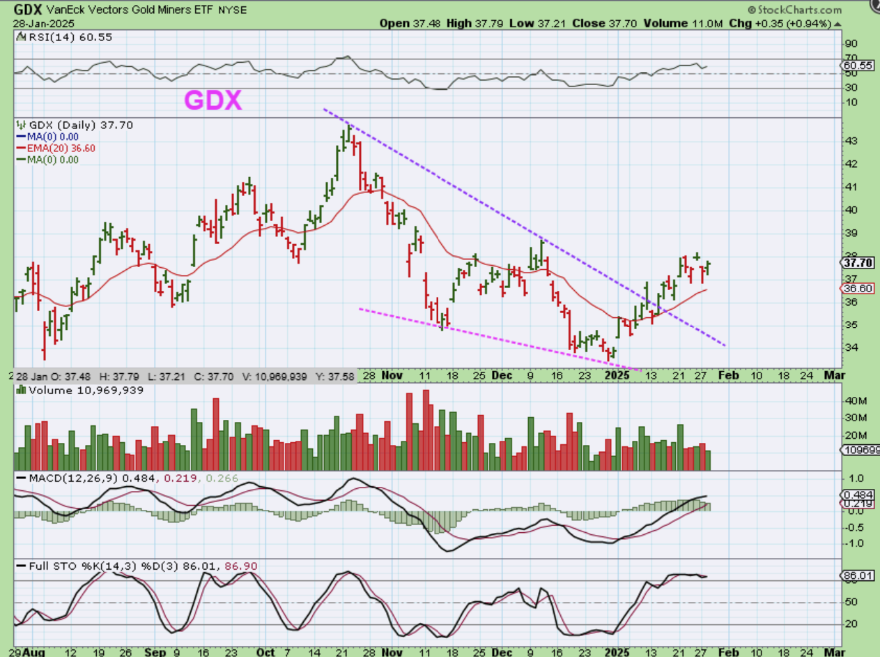 GDX – So here we are now with a strong 4% pop as GDX continues to try to catch up to the prior highs. Now let’s talk about Miners again…