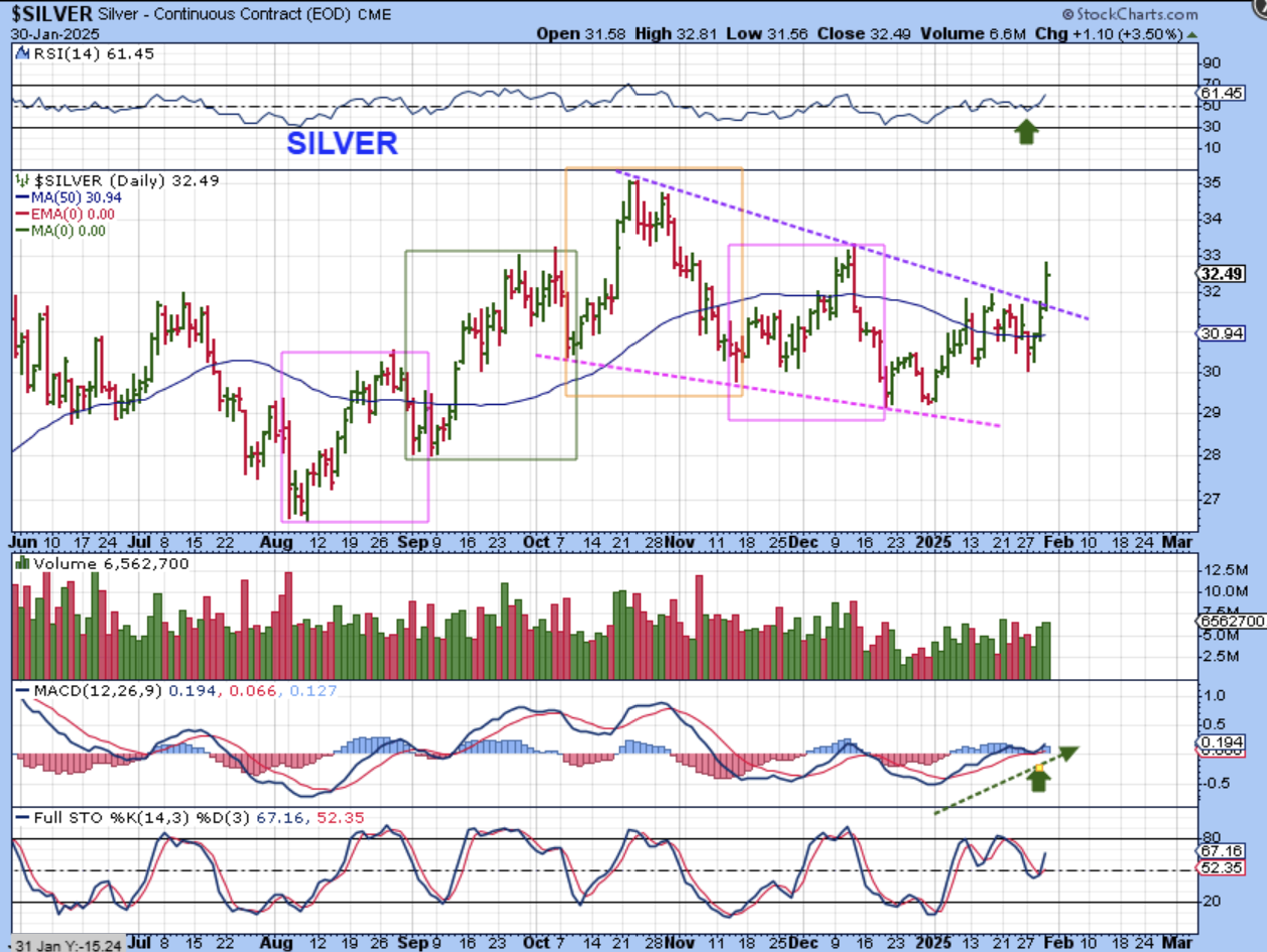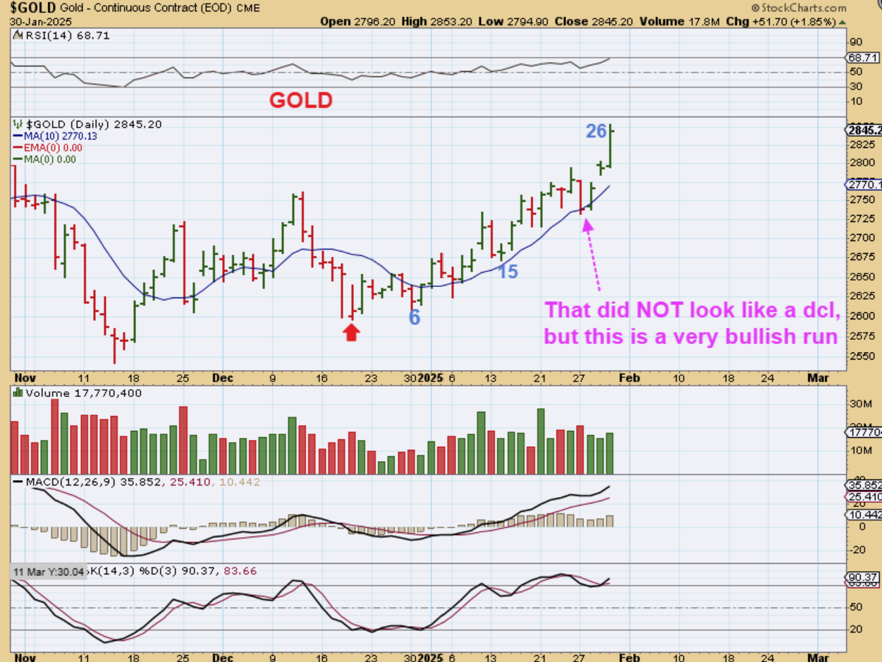 3. A dcl last week is possible, but if Gold needs a dcl, Silver may dip again too, and back test the breakout as the real dcl. THAT WOULD BE A STRONG BUY. Silver stocks are finally starting to move too.