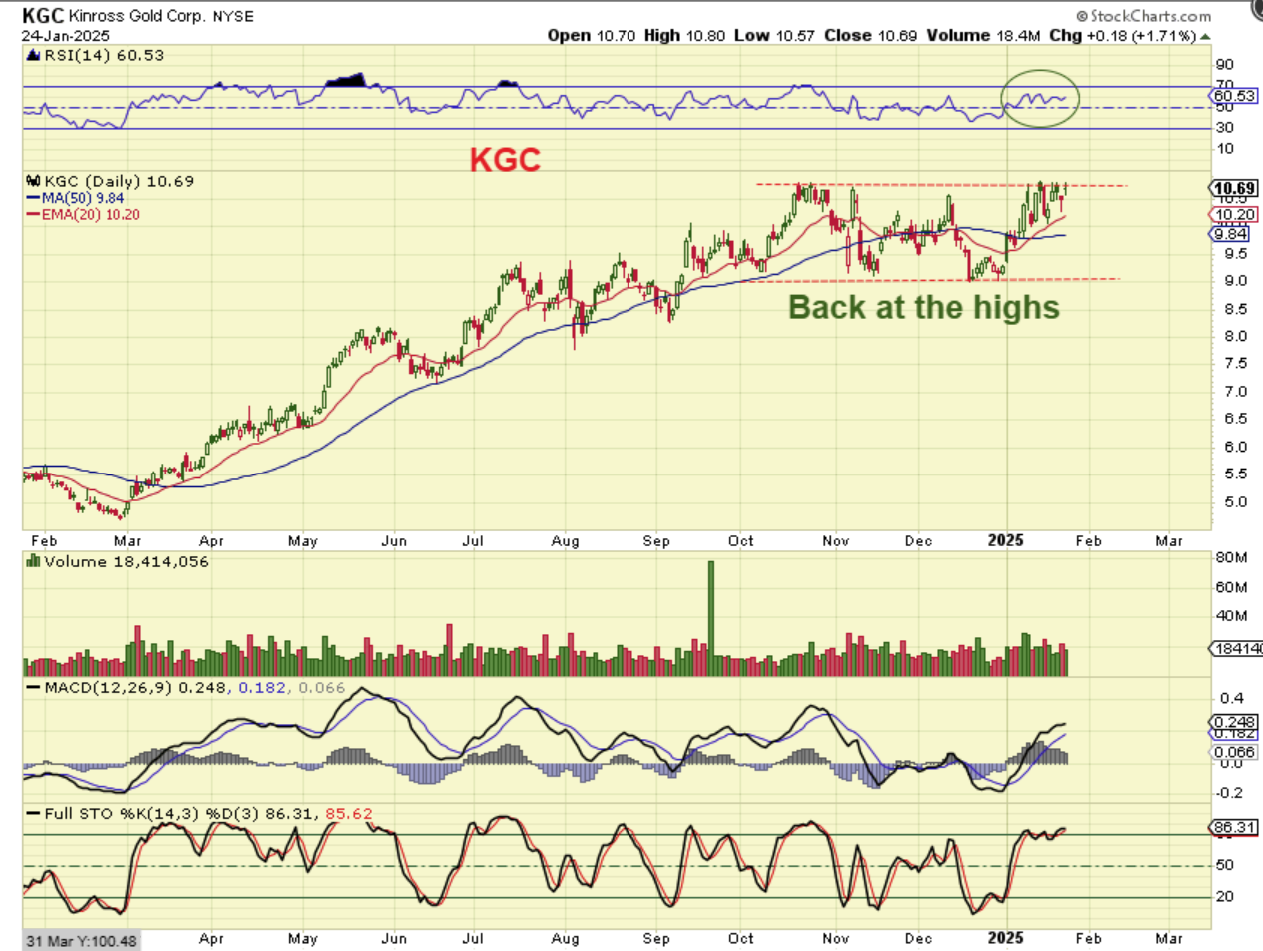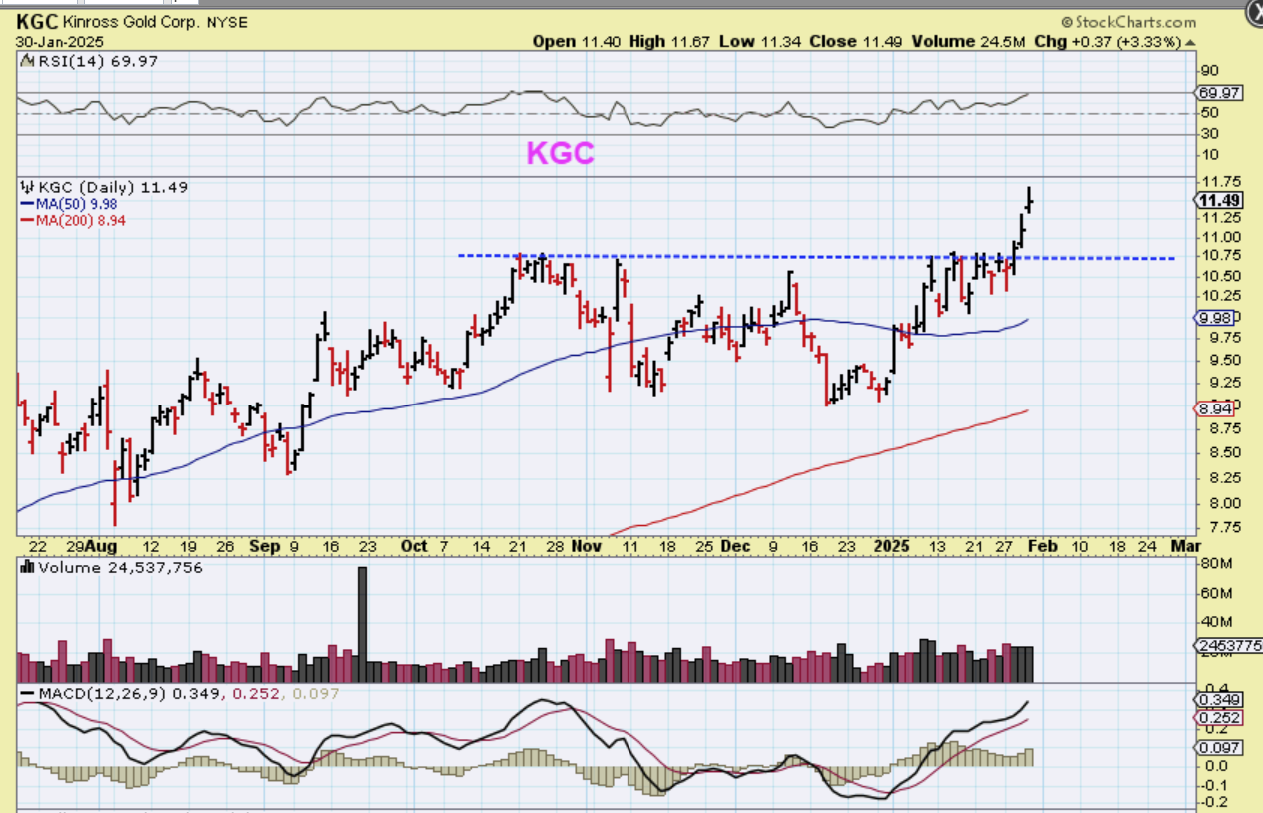 Stocks that I have pointed out as leaders like KGC, AEM, HMY, AU, etc are doing well, I showed you this a couple of days ago and said to buy or add on the dip on these.