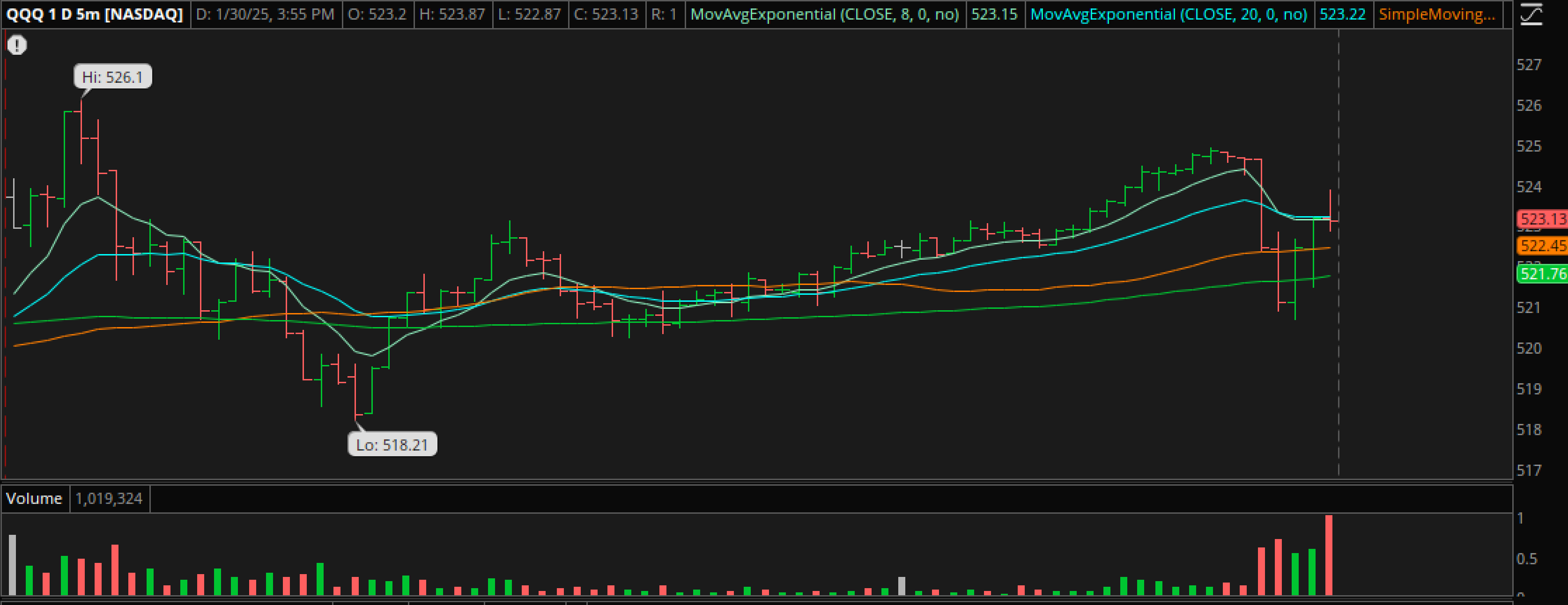 QQQ: That gave us a doji. You can see why they call these ‘indecision candles’. Even with that choppy indecisive ‘news’ driven trading day, buyers stepped in and the markets can continue higher.