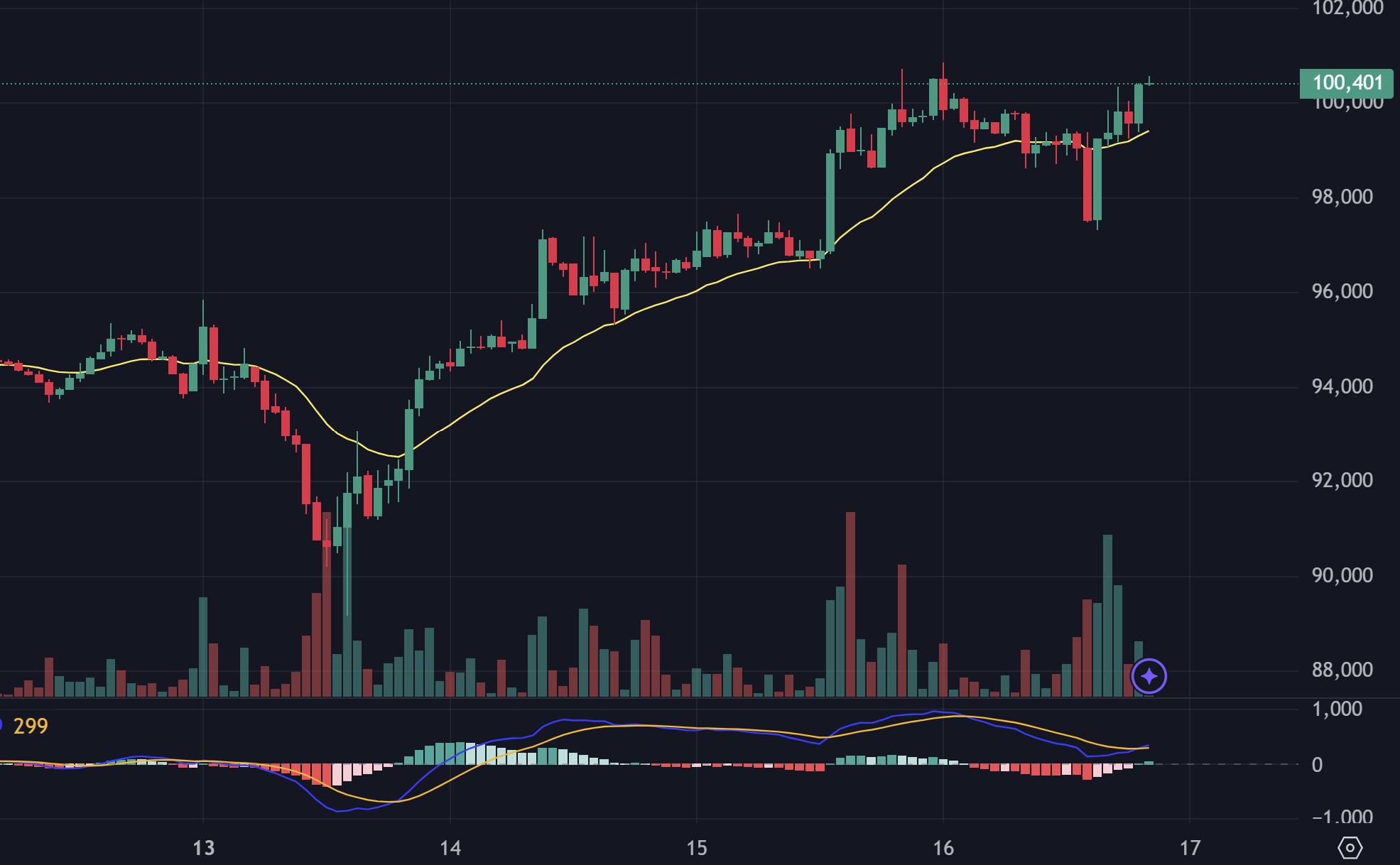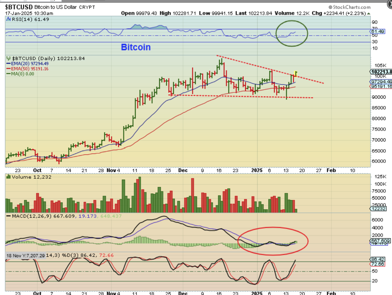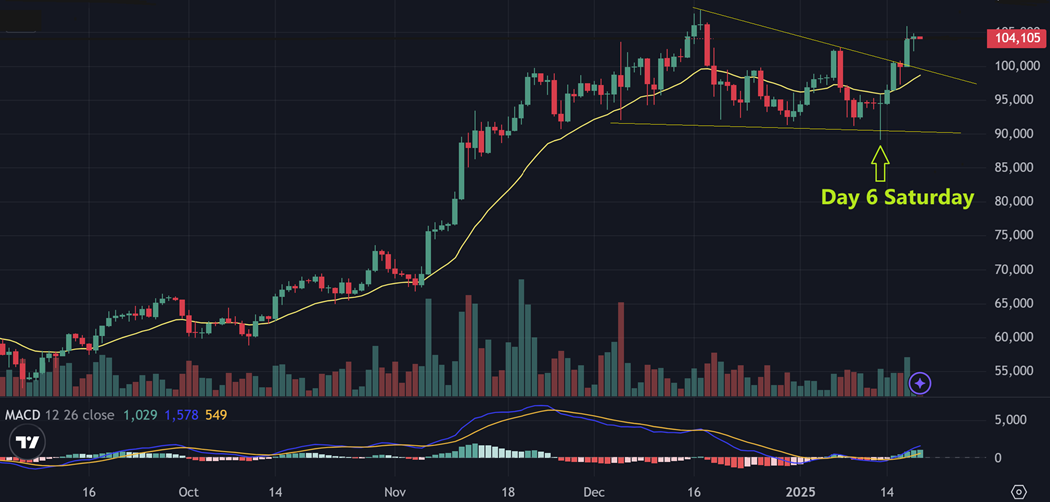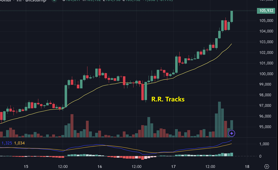 And this was the follow through on Friday of that BITCOIN Railroad Tracks Pattern. It ran from $97,000 to almost $106,00.