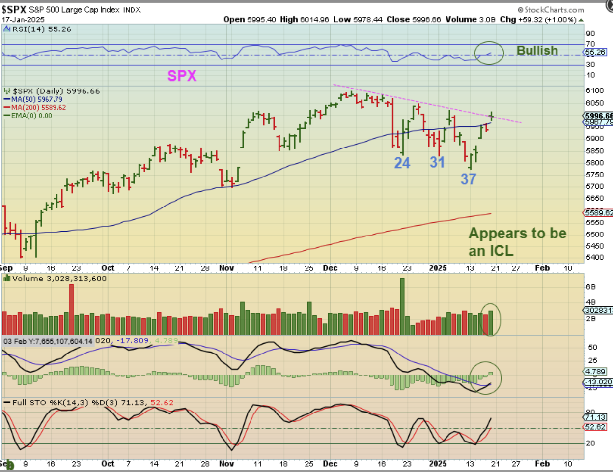 THE SPX gapped up and over the 50sma, it broke the downtrend line, the RSI turned bullish and the MACD is starting to cross higher. This is definitely a dcl, but it also has the characteristics of an ICL. Now, let me show you something else…