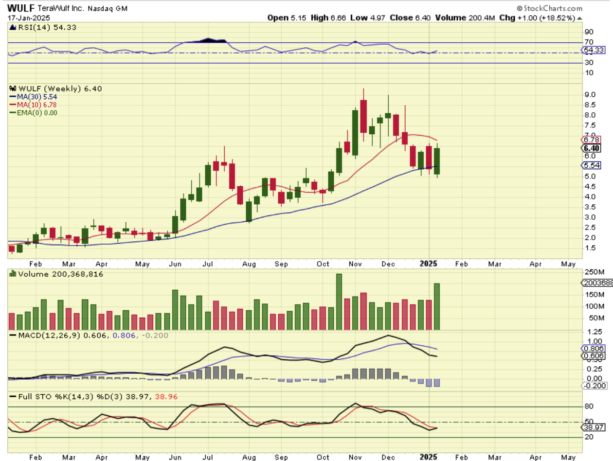 WULF:  You can see that HUT, WULF, RIOT, etc put in good gains for the week, but they were choppy and sold off daily, so it felt uncomfortable at times. Here WULF was up 18.5% for the week. Looks great, right?  Well…