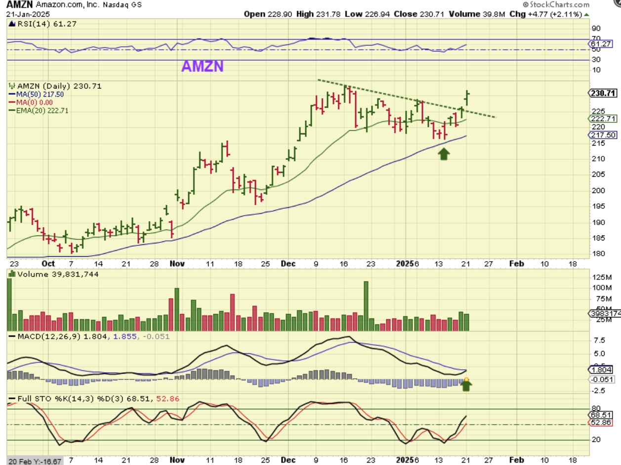 AMZN – I have discussed former bullish stocks like AMZN, NVDA, NFLX, GOOG, MSFT, etc etc as worthy of buying and holding at the ICL (lows). AMZN reversed above the 50sma during an ICL drop (bullish) had a bullish breakout yesterday too.