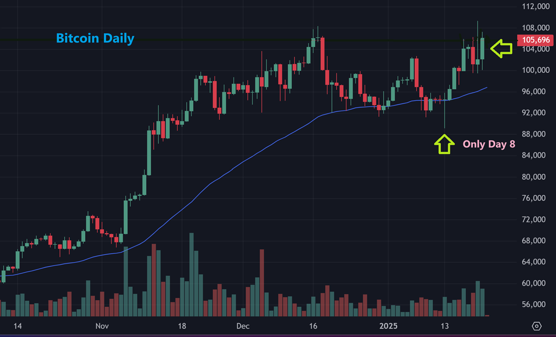 BITCOIN has acted as expected and remains bullish, and it is only day 8, so this should have days of good upside, but the Crypto stocks are a little questionable. Why?  They were acting well recently, with HUT, WULF, BTDR, etc starting to kick it into gear, but let me show you something…