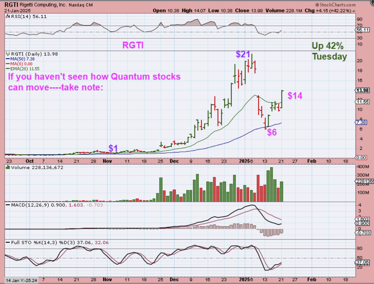 RGTI was up 42%. Read the chart please. Beware of the risks with Quantum stocks, Robotics stocks, and maybe AI stocks.