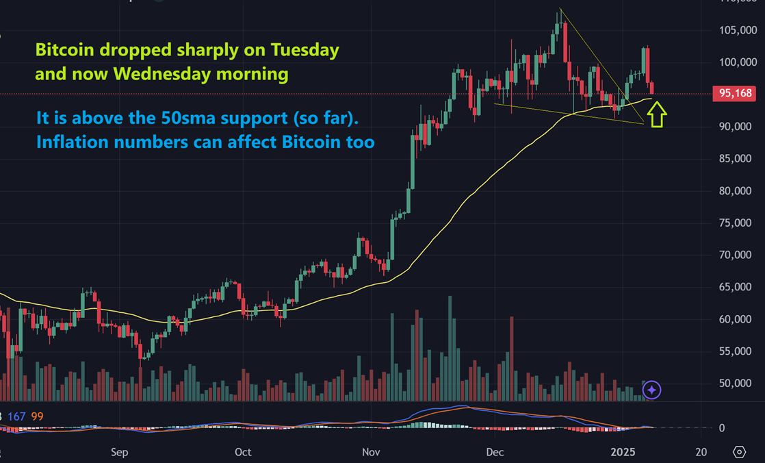 BITCOIN 6:30 a.m. Wednesday: This was also affected by the possibility of less rate cuts after that Jobs Report came out. Please read the chart.