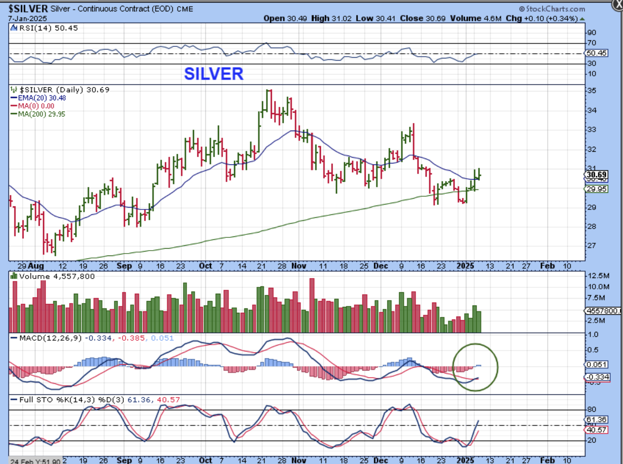 SILVER is very slowly climbing higher, but you can see that every day has seen a sell off into the close. The Silver Miners are doing that too, with pop and drop action and slight gains daily.