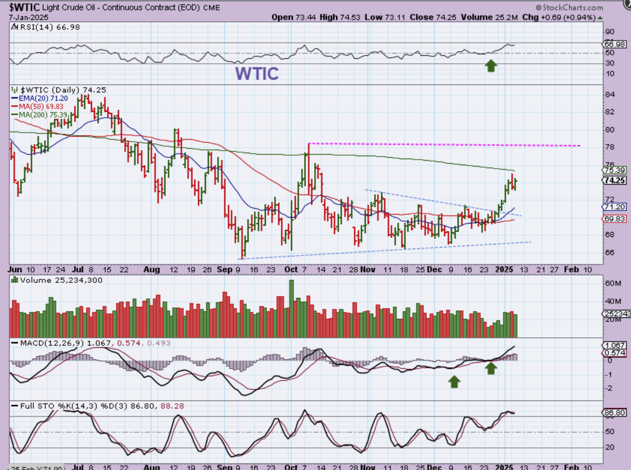 WTIC – Oil has run up to the 200sma and stalled for now. This nonstop chop formed a triangular pattern. This now takes on a bullish appearance. A pullback to back-test the 50sma or triangle is not out of the question, since that would just be a dcl.