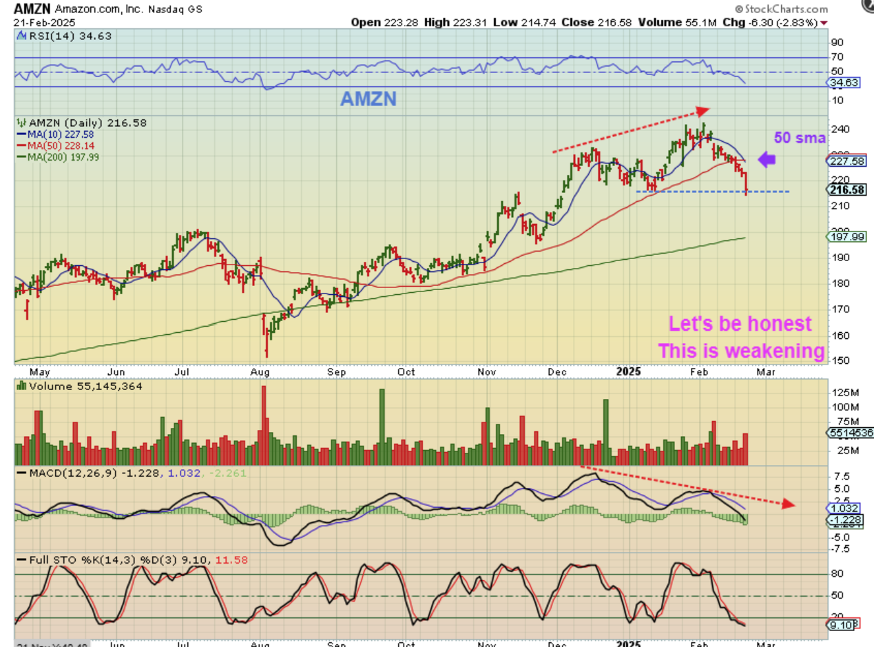 Some now look a bit bearish actually. AMZN, GOOG, TSLA, and others look weak, while PLTR, GRRR, UPST and several others look bullish. I’m going to continually watch my watch list and see if weaker ones get stronger, or do the stronger ones weaken?