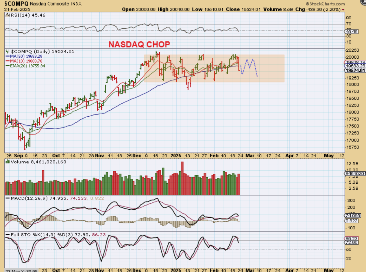 THE NASDAQ dropped 2.2% on Friday too. It lost the 50sma, but Gold lost the 50sma in the ABOVE chart too, so right now we have to let this VERY CHOPPY first daily cycle play out and then see what we get over time.