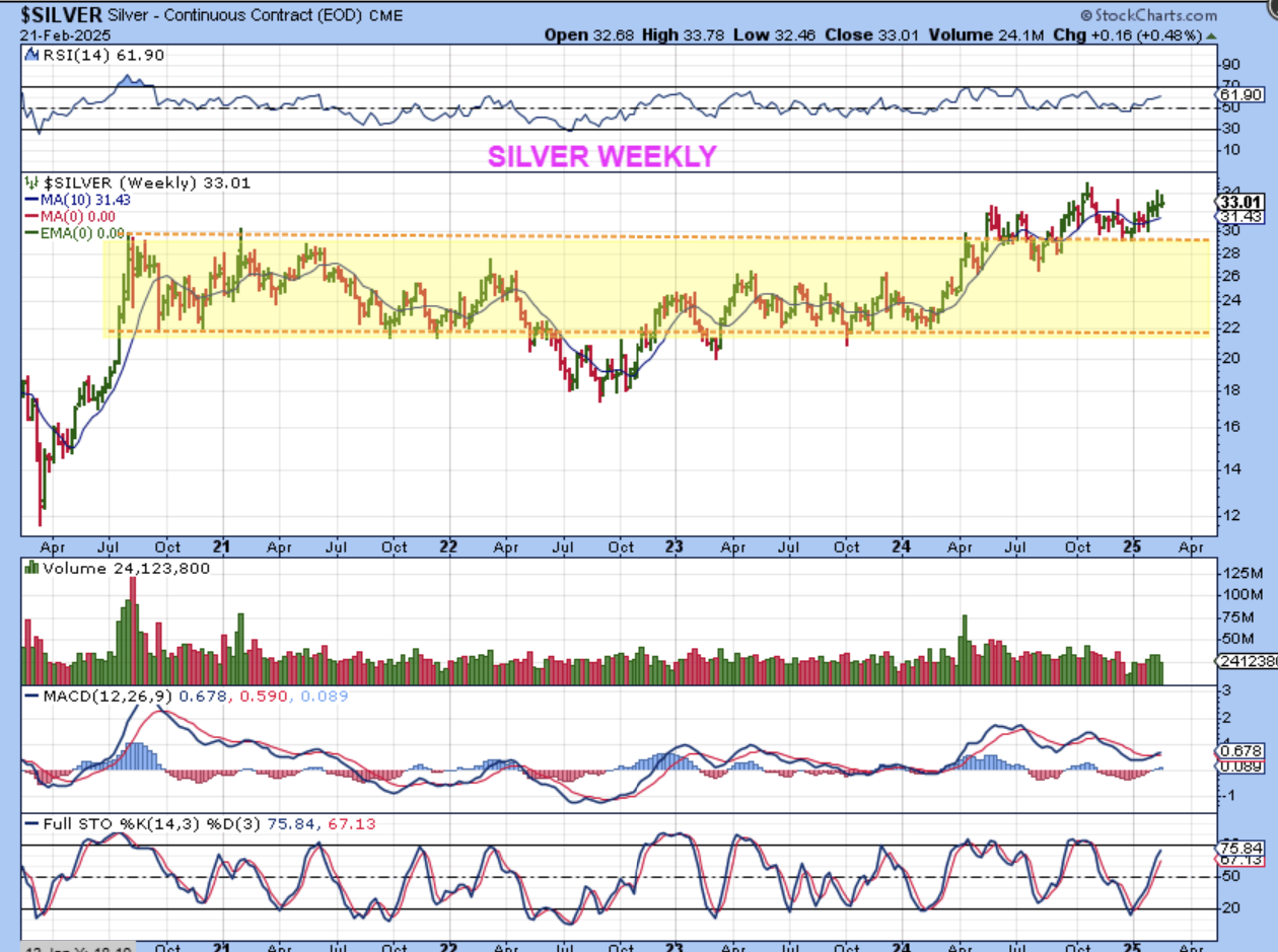 My SILVER WEEKLY ‘Wishful thinking’ chart– The current set up does have similarities to the point where Silver LAUNCHED up to over $50 after chopping for weeks and months in the past.
