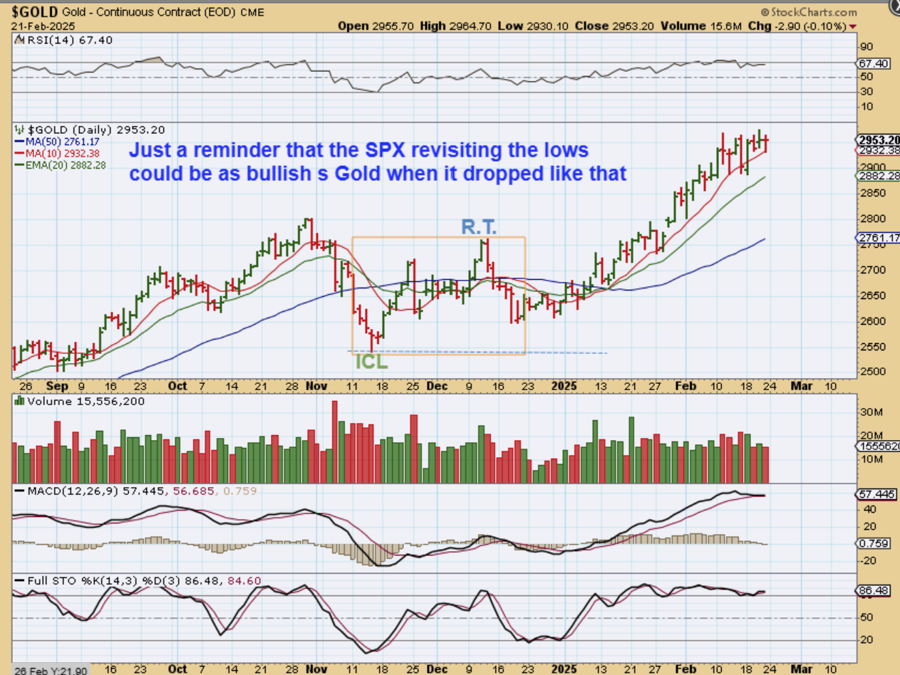 TAKE A LOOK AT GOLDS day 7 plunge and then the day 19 -day 24 sell off. That brought price back toward the lows and GOLD looked weak, but what happened after that? It chopped higher out of that low and then never broke below the 10sma, so this is my reminder: The markets have been choppy, but they can stabilize out of the next low.