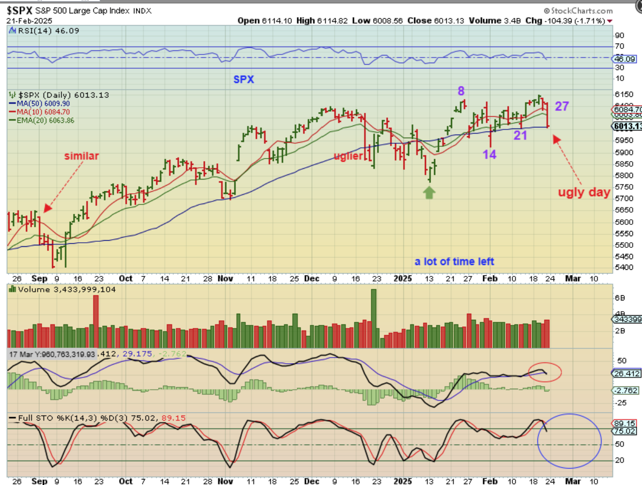 THE SPX was finally getting some traction and made a new high above day 8, but Friday saw it sell off all day long. IT closed at the 50sma. So…
