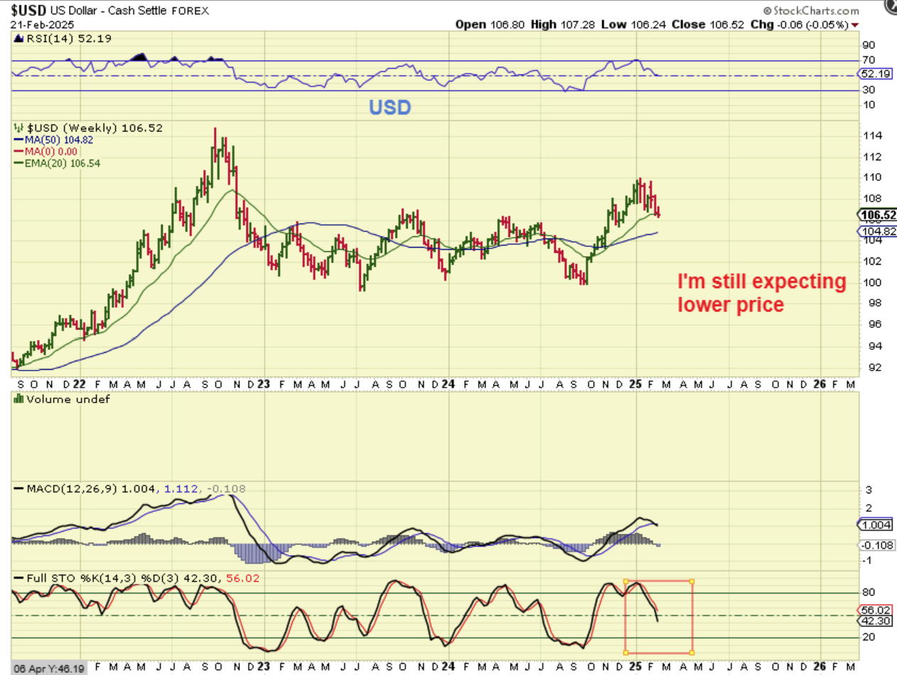 THE USD WEEKLY – I am still expecting price to continue lower here.