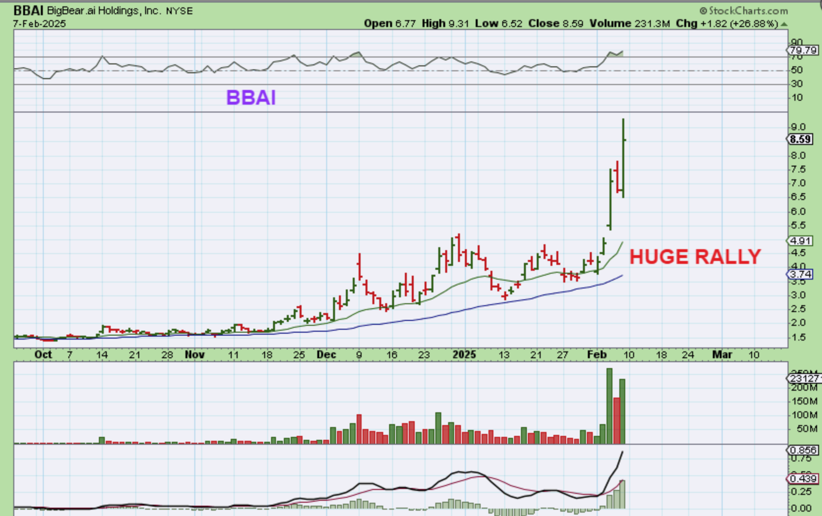 Did you see BBAI? It has had a Huge Rally, despite the markets sell offs. That is an ‘AI’ stock Rally, so ‘SOUN’ and ‘AI’ (same sector) are resting on support areas and might be next.