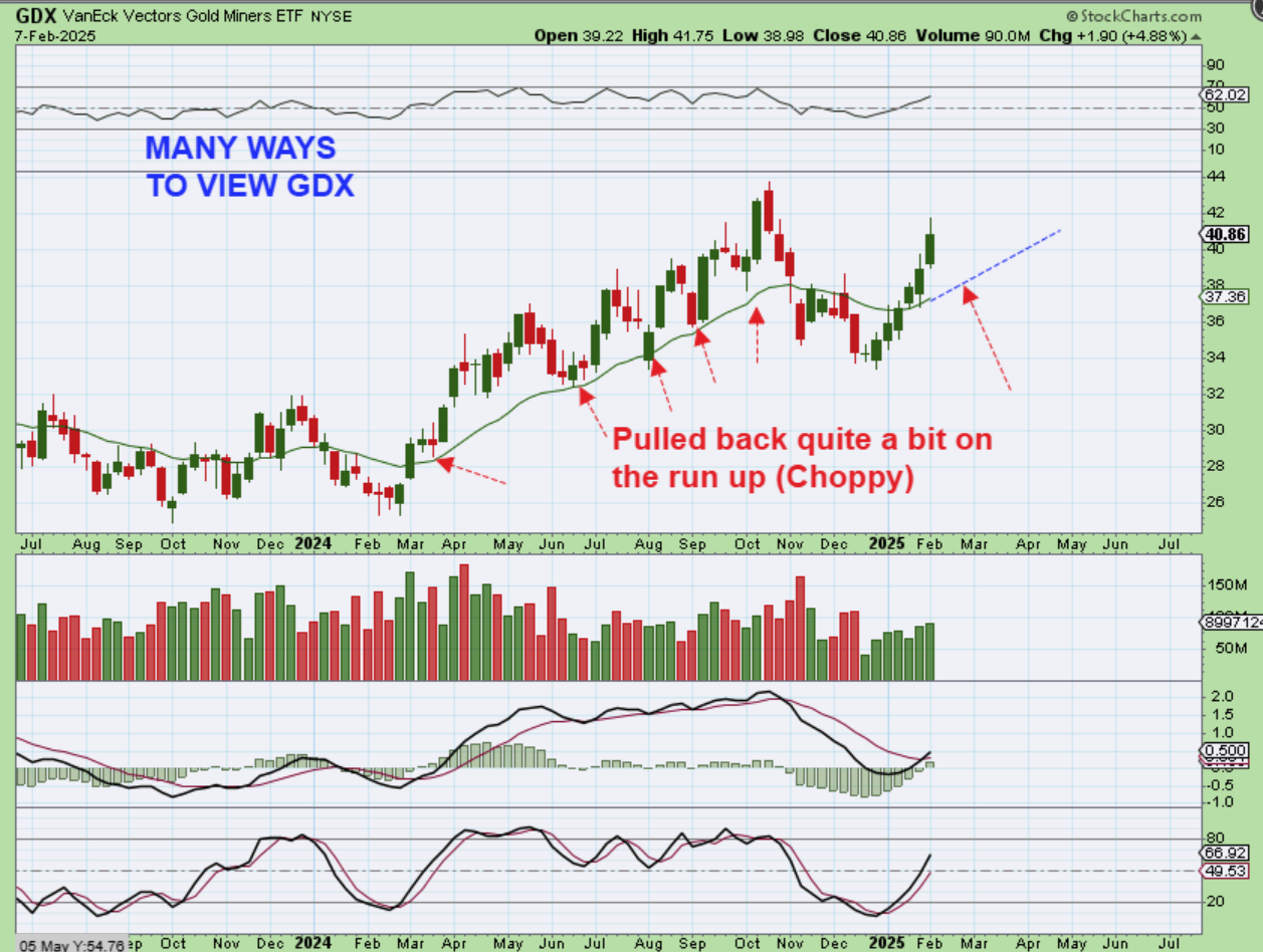I will do 3 different views of THE GDX WEEKLY CHARTS.