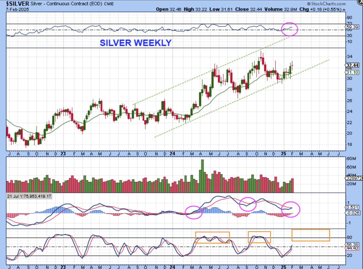 SPX WEEKLY – I hate to point out a topping Intermediate Cycle vs where we are now, but there are similarities to late 2021 (weakening MACD for example).