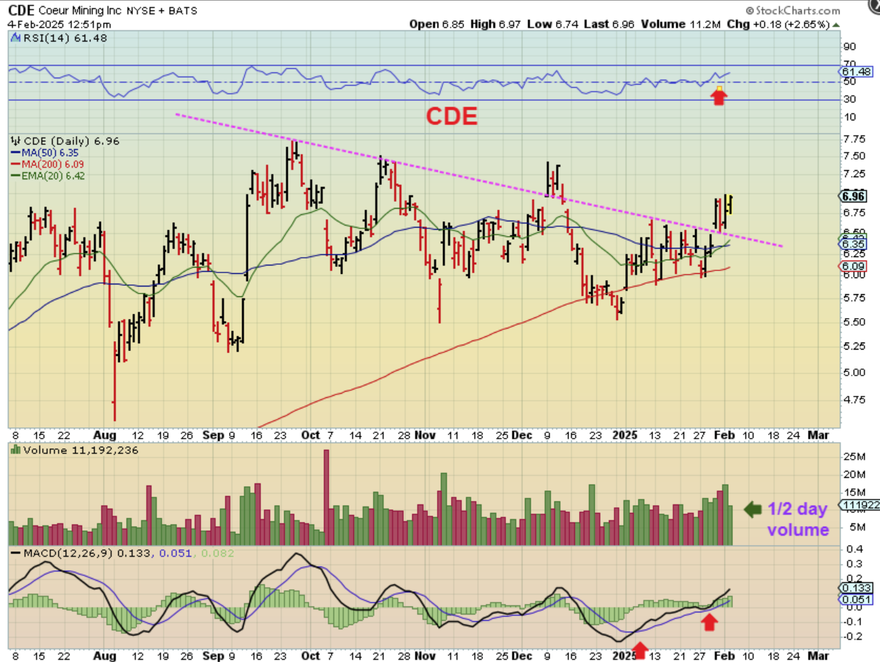 CDE lagged and chopped for a couple of weeks, but it broke higher recently and could start to run with Silver. Let’s zoom out…