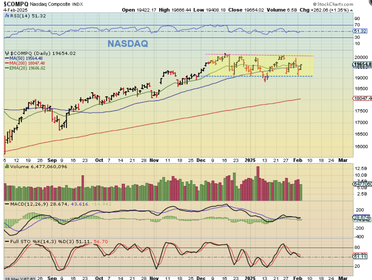 THE NASDAQ has been choppy and in a box consolidation, but it did regain the 50sma yesterday.