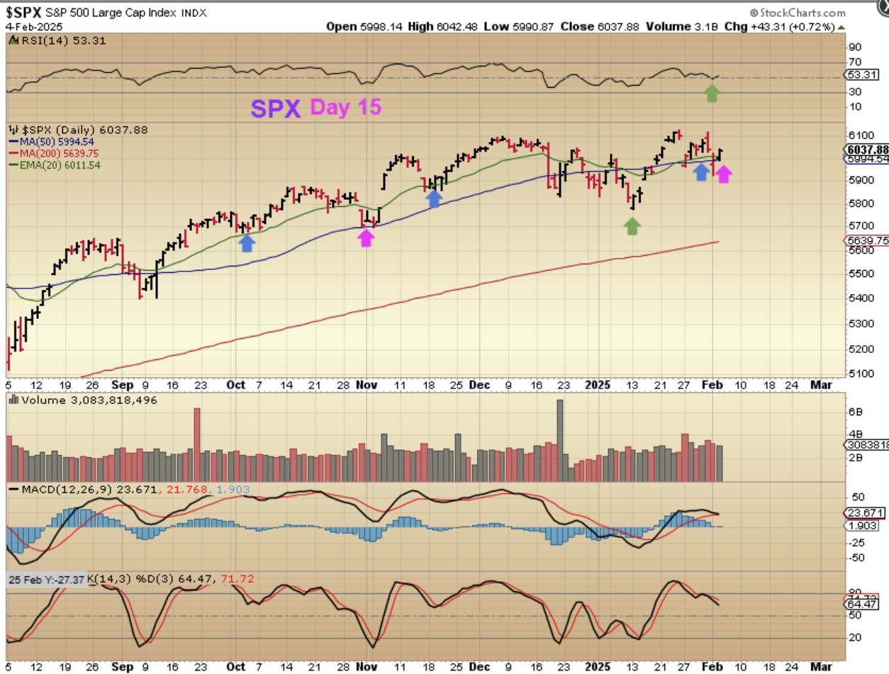 SPX – Once again the markets were able to bounce back from the Trump Dump. Now hopefully we can get some follow through to the upside. This is only day 15.