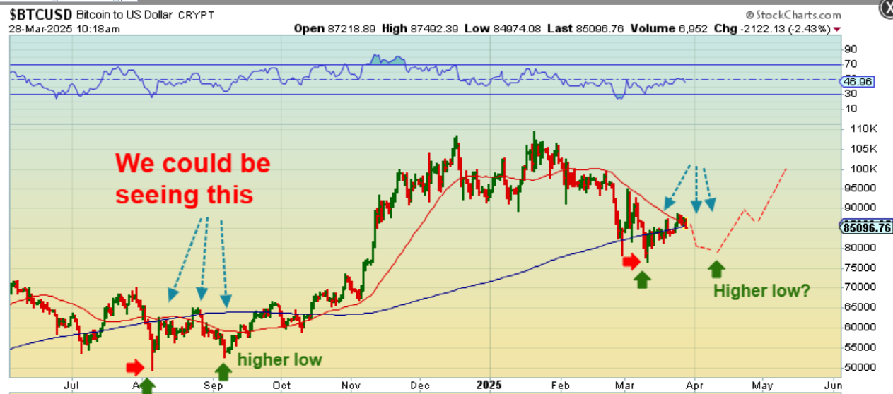 We need more time, but the Precious Metals sector, Gold, Silver, and Miners have remained bullish despite general market price action. Bitcoin is similar to the General Markets, I’ll discuss it below. I will be going to my mothers to help her out this morning, so I wont be in the commenting area steadily until possible noon. I may try to pop in before then, to see what is taking place in the markets, and I’ll report what I see if I see anything interesting. We are heading into spring time here in New England, so there is work to be done around the house 🙂 Enjoy your Friday trading.