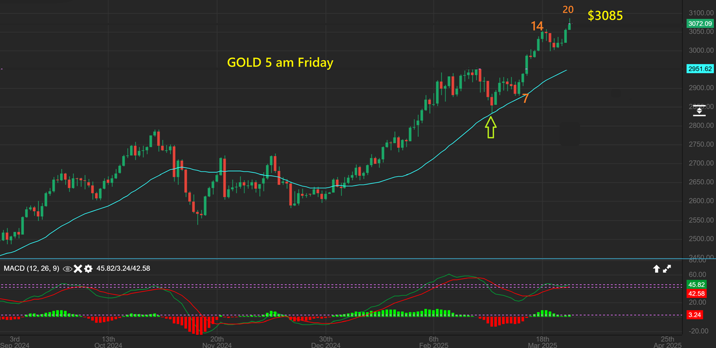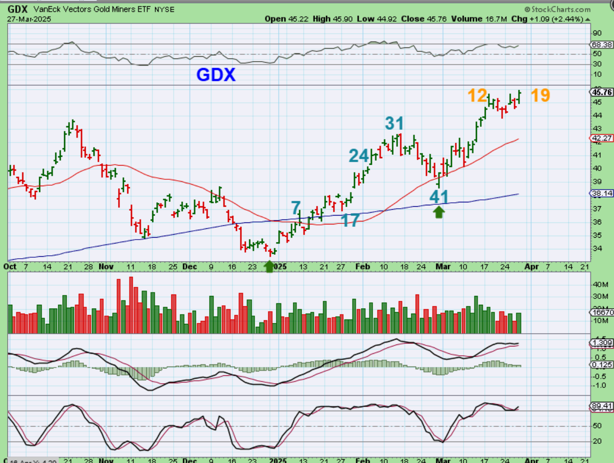 GOLD made a new high overnight of $3085 and it is on day 20. Gold has been stronger than most miners, but several they are trying to follow to new highs.
