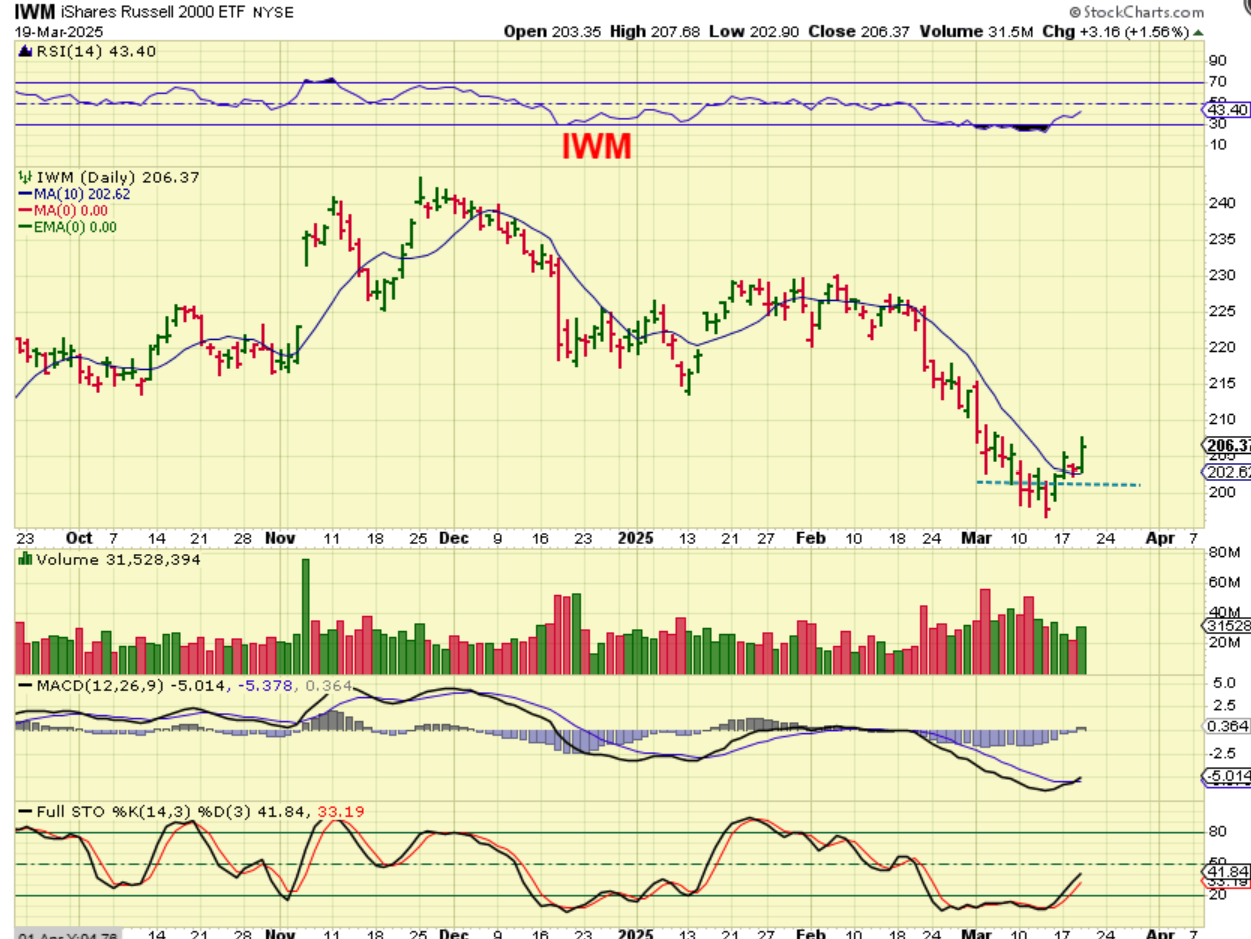THE IWM had a clear swing low, and close above the 10sma on Monday. With the IWM we already have a MACD cross and the RSI is closing in on 50%, so this is a good clue that the Lows are in place too.