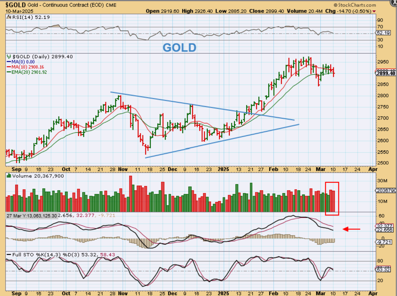 SILVER – Now Silvers MACD is stalling? That doesn’t really mean very much at this point, because 2 or 3 UP Days could change that, but this chop is frustrating, and I would NOT want to see Silver lose the red line (50sma). Silver is still more oversold than overbought, so Silver still looks good to me, so far.