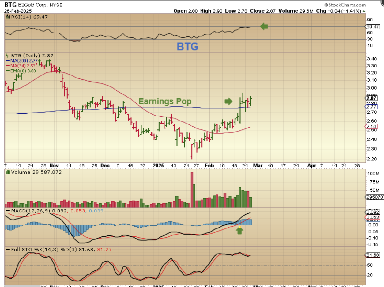 I pointed out BTG as a ‘lagger’, but it ‘Popped’ on earnings, so that is a good sign.