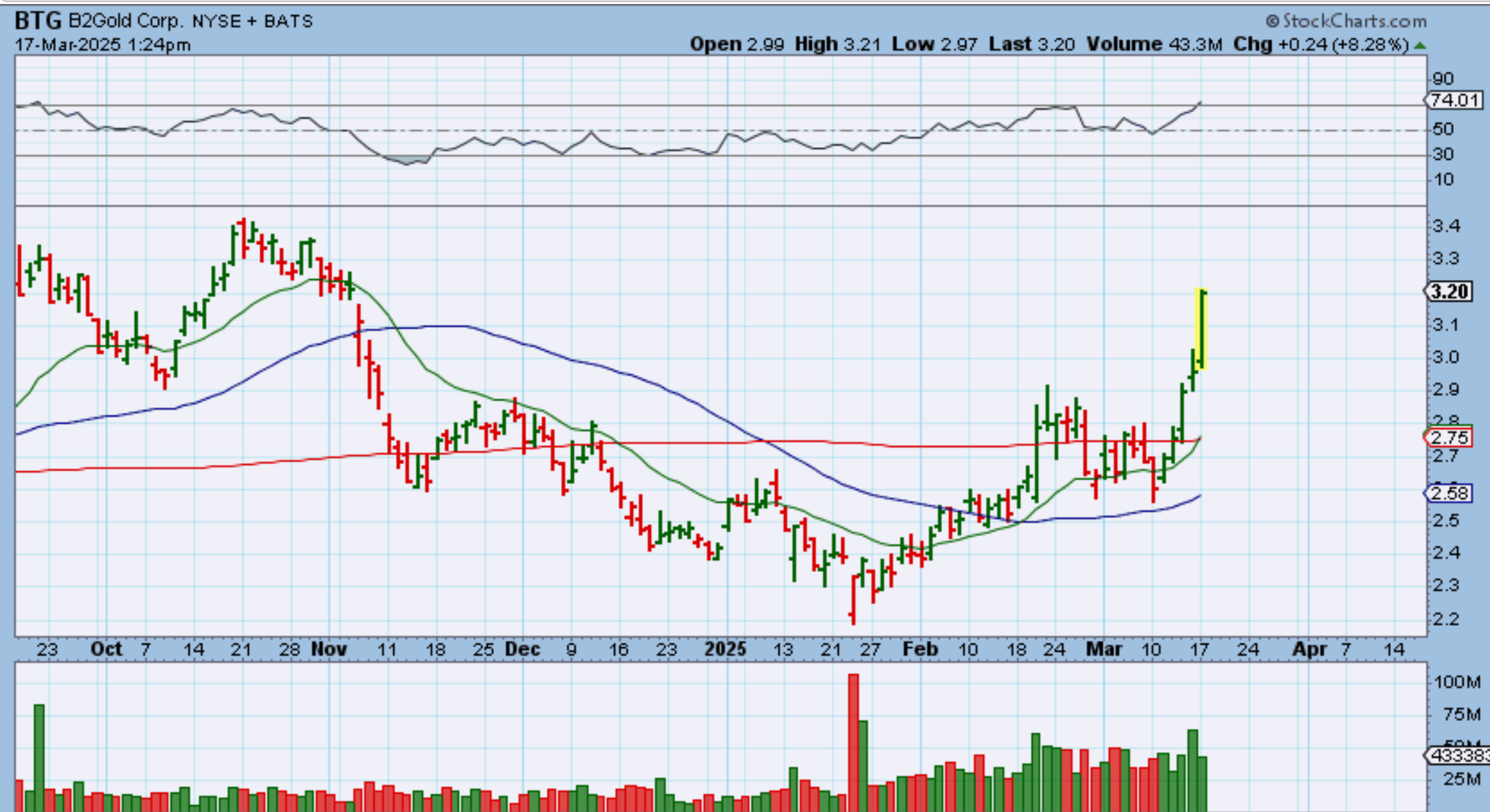 Unfortunately BTG pulled back to the 50sma as a lagger, but as soon as it got above that 200sma again, it has been stretching out higher.